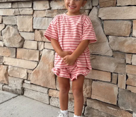 Be the first to review “Kids Terry Cloth Stripe Short Sleeve Top and Ruffle Hem Shorts Set Breathable Girl Beach Wear Baby Clothing Set”