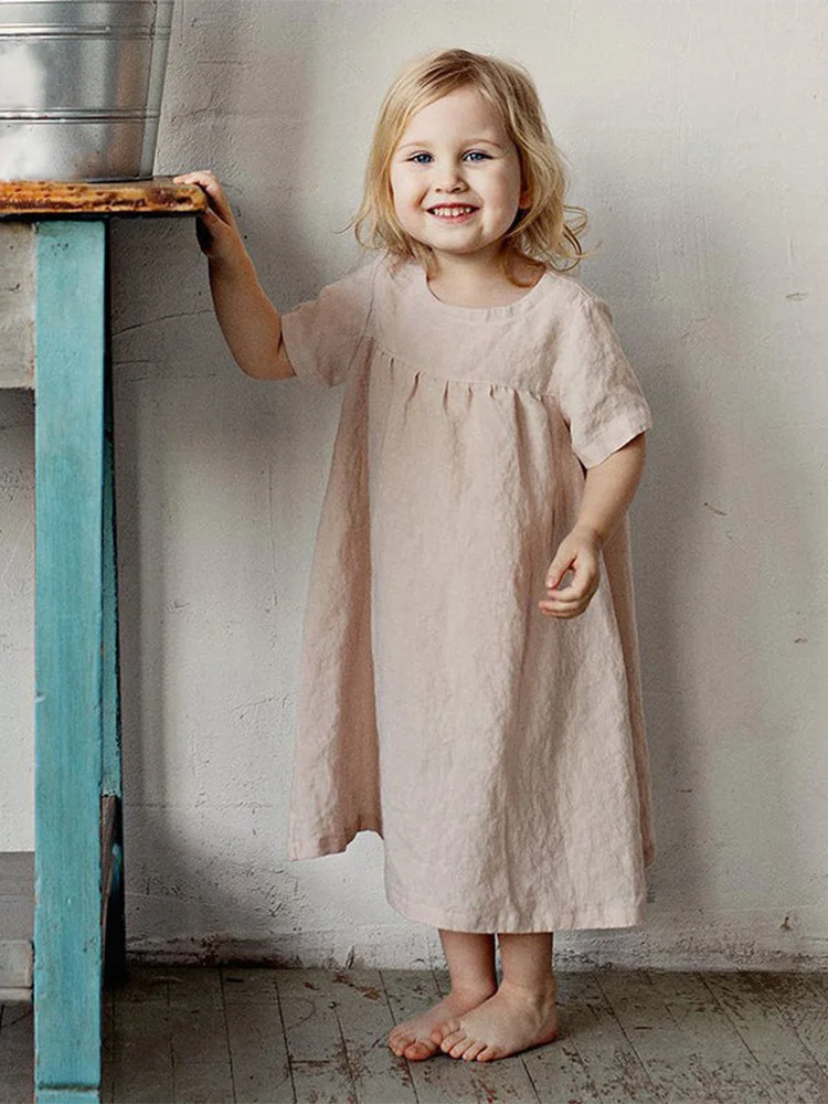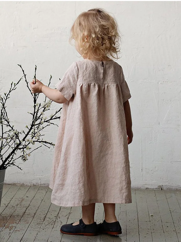Lively and Lightweight Cotton Linen Dress for Girls New Kids’ Short-Style Design Full of Vitality and Fashionable