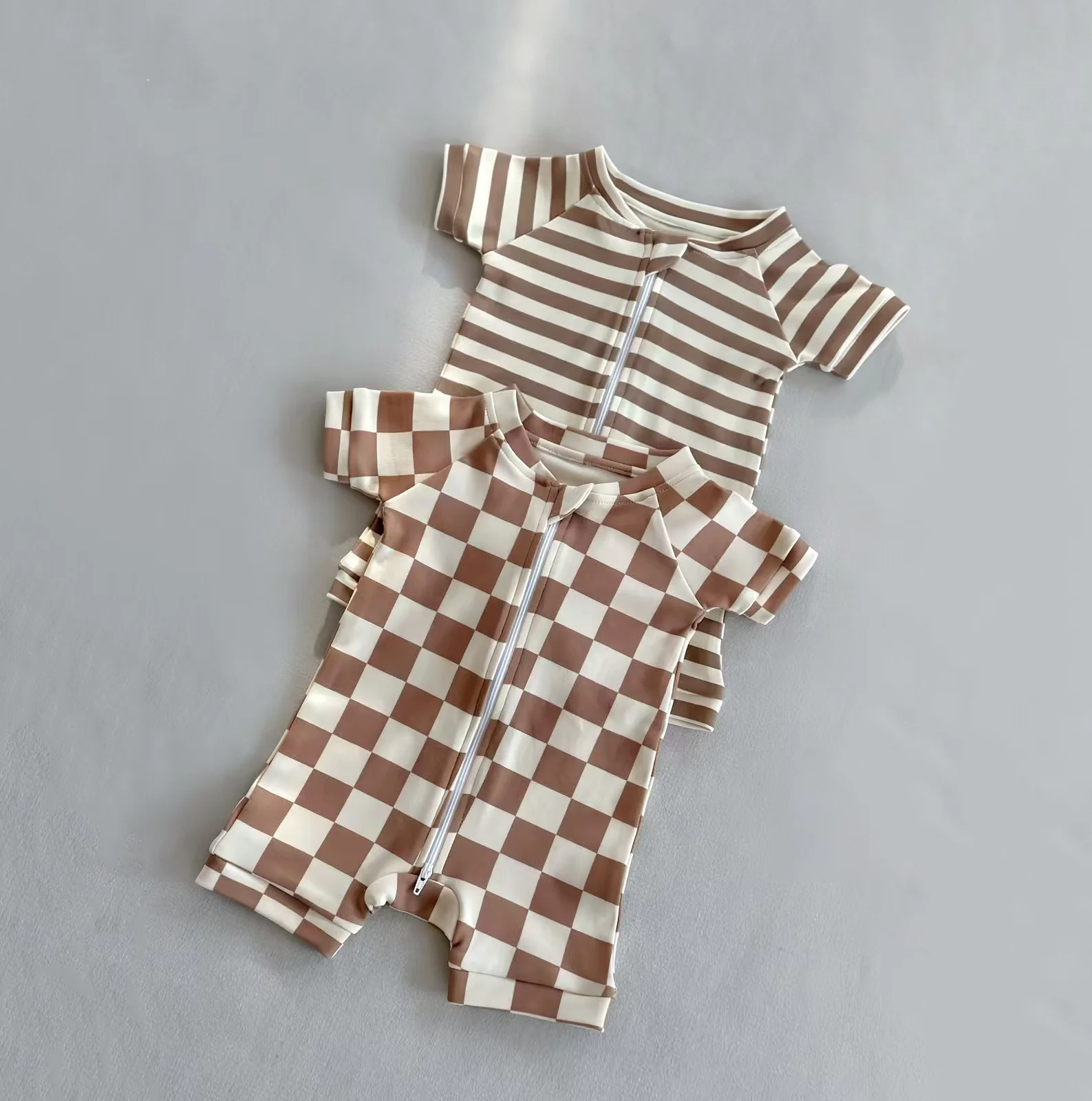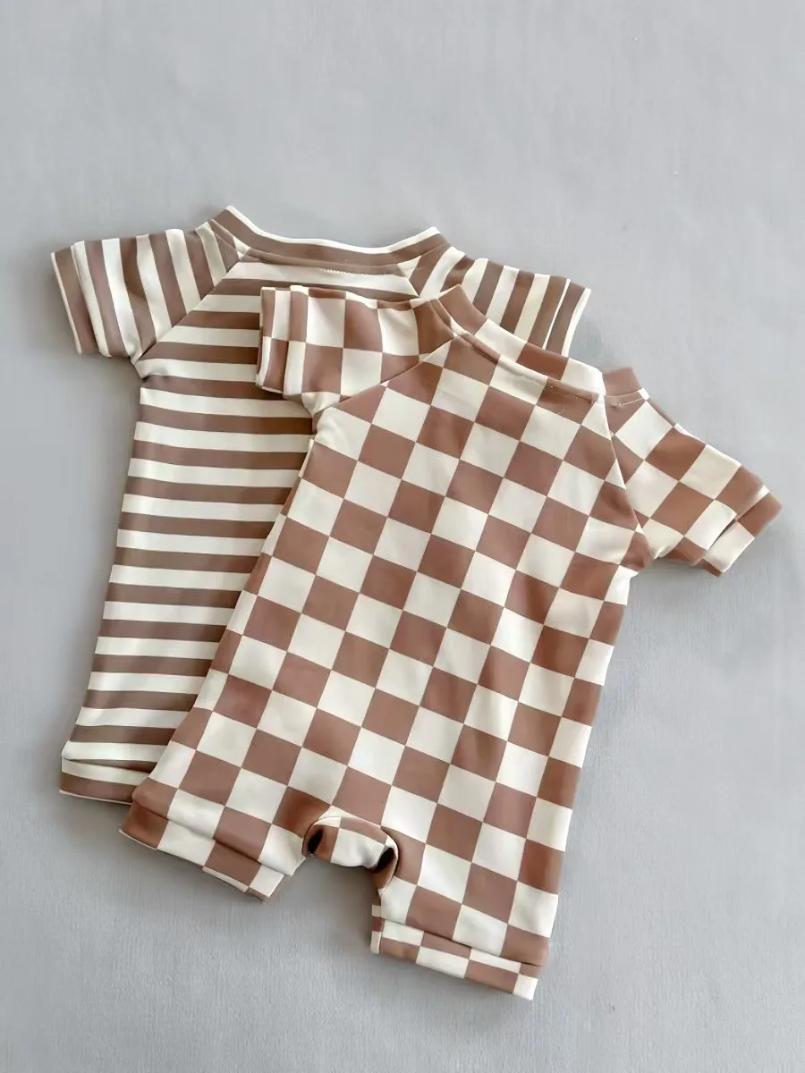 New Arrival Summer Kids Boys Girls Checkerboard Short Sleeve Knitted Cotton Romper Baby Clothes