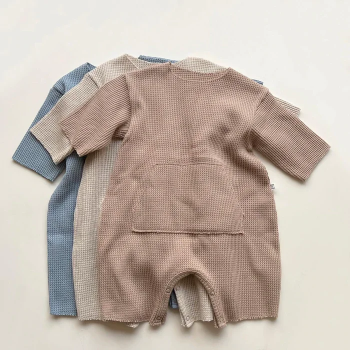 Be the first to review “New Arrival Waffle Cotton Solid Color Long Sleeve Unisex Baby Bubble Romper for Autumn”