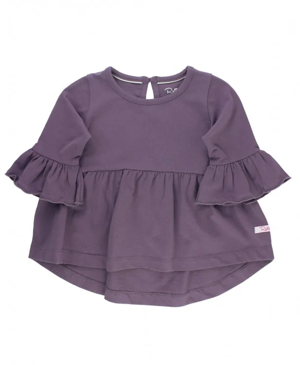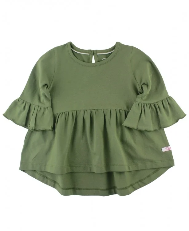 New Design Girl Ruffle Sleeve Pullover Solid Knitted Cotton Tunic Kids Button Top Wholesale