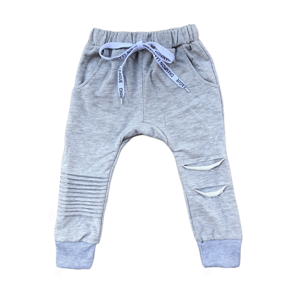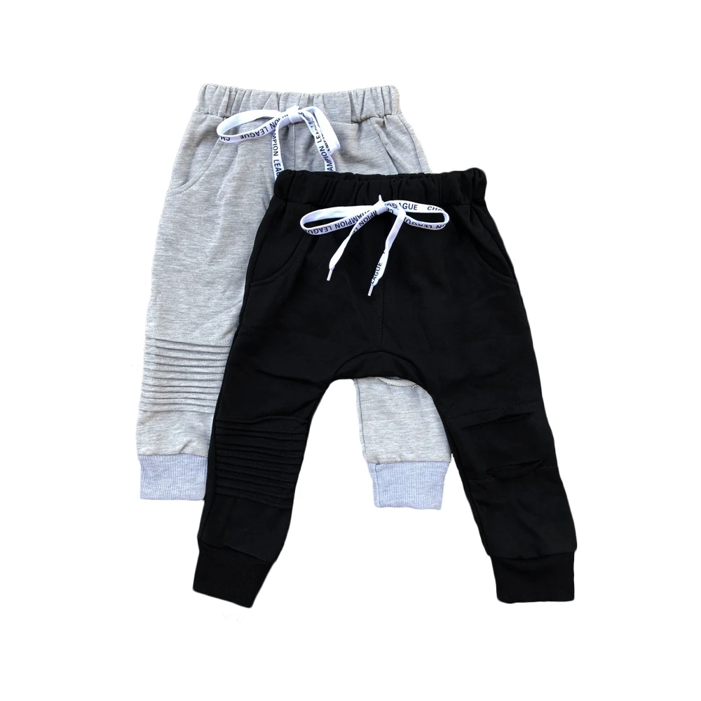 New Design Jersey Cotton Custom Color Fold Baby Long Pants with Drawstring for Autumn