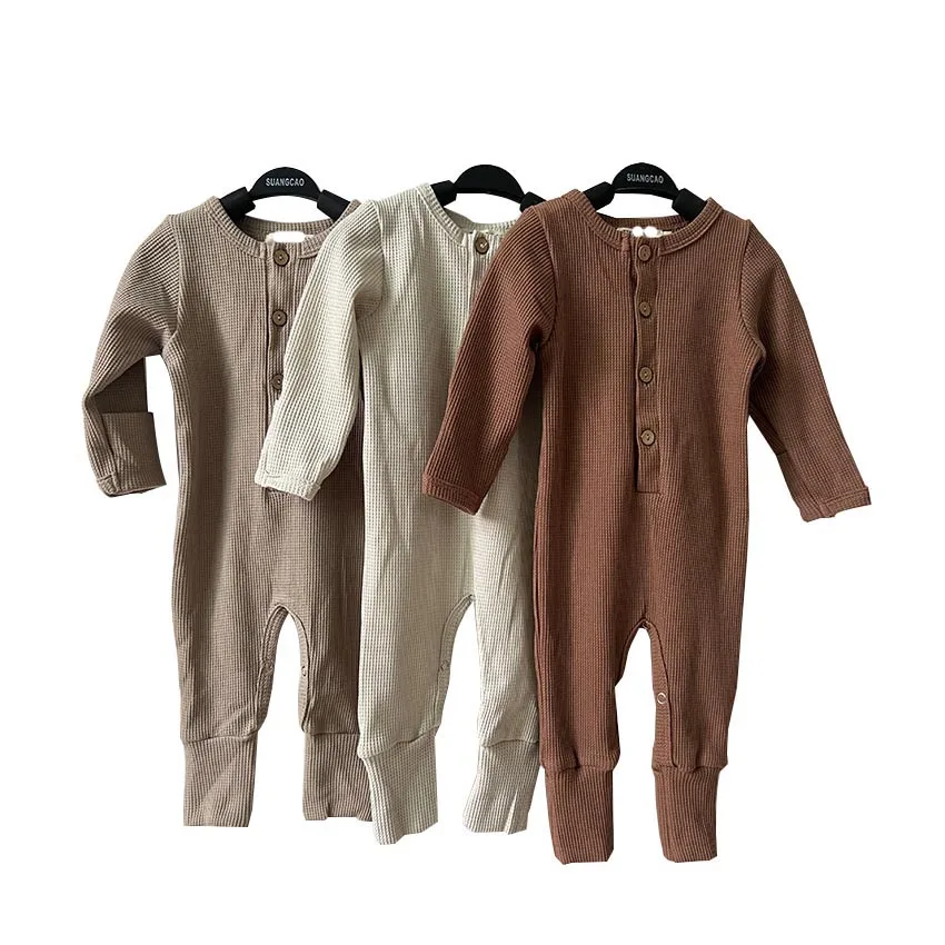 New Design Waffle Cotton Custom Pattern Sleeveless Overall Baby Rompers for Summer