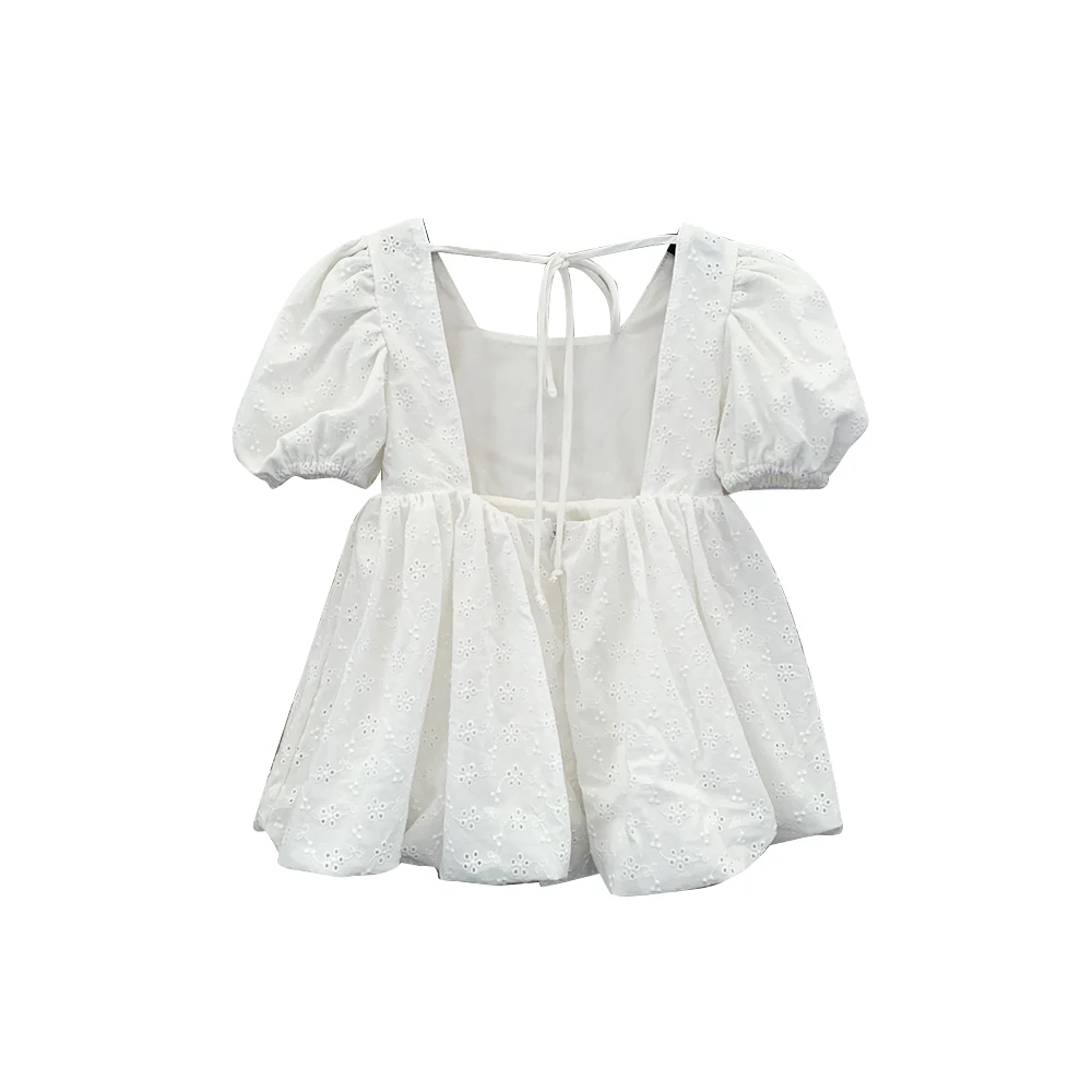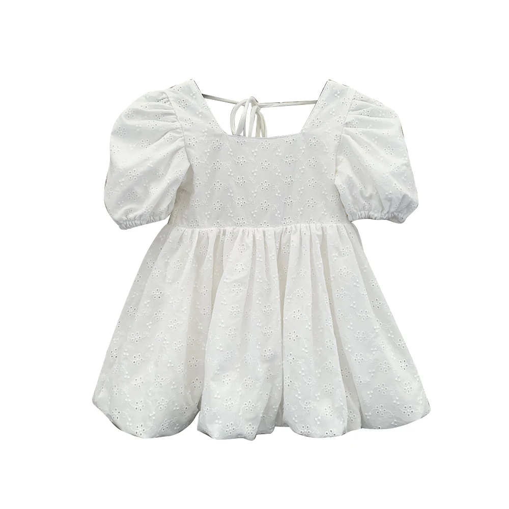 New Product Bubble 100% Cotton Short Sleeve Cute Lace Skirts Summer Dresses for Girls