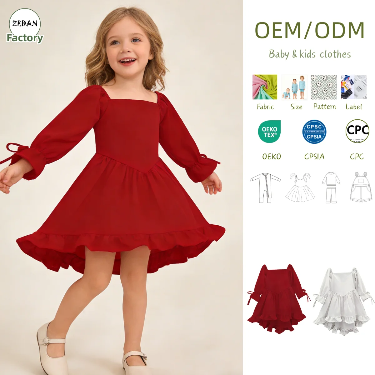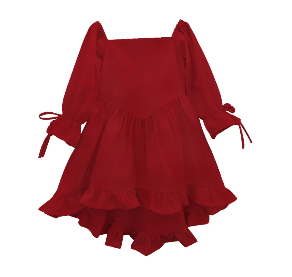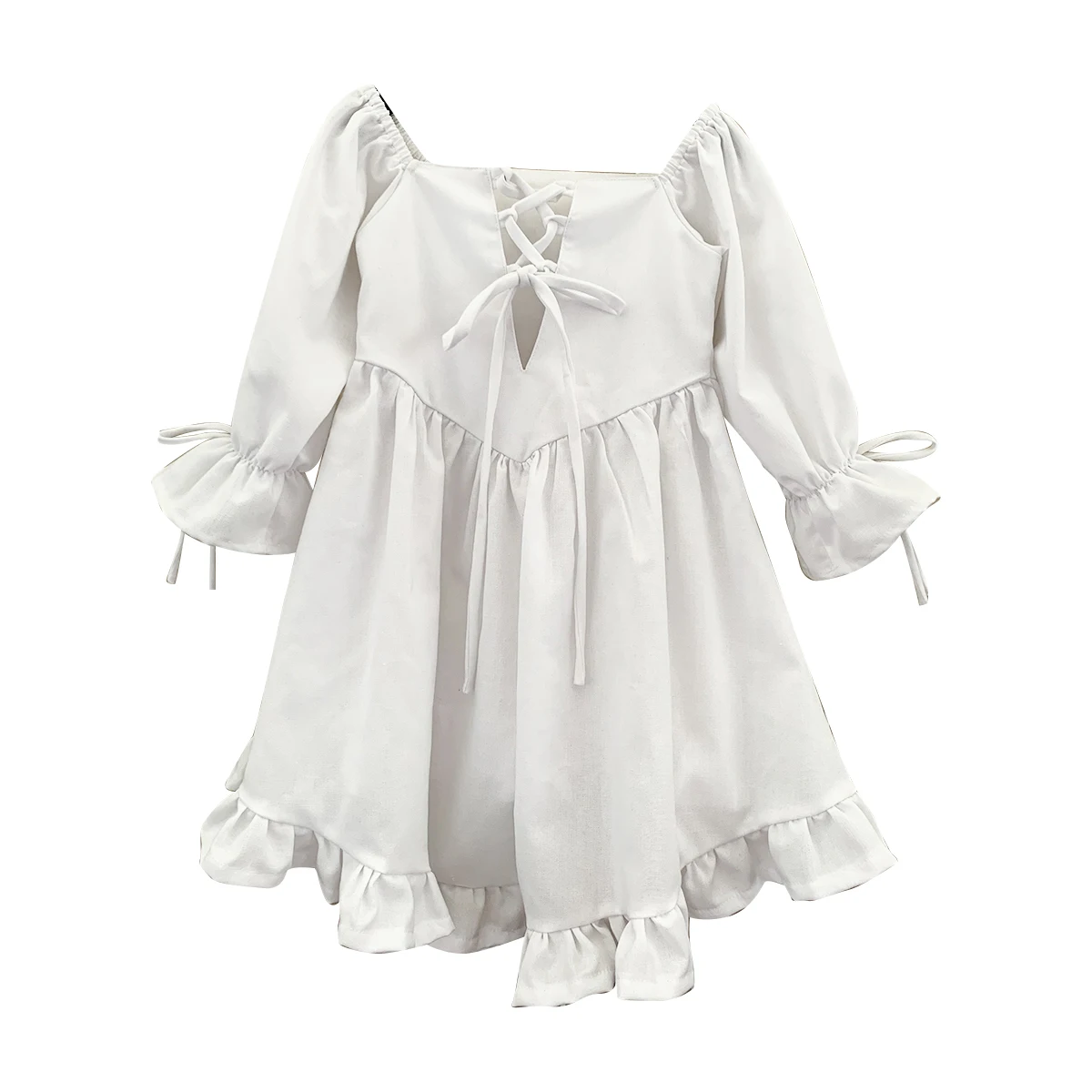 New Product Linen 100% Cotton Custom Color Long Sleeve Girls Dresses with Lace Summer Baby Girl Dress for 0-6T