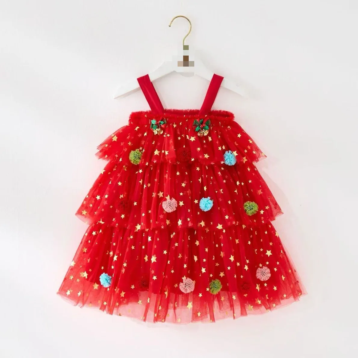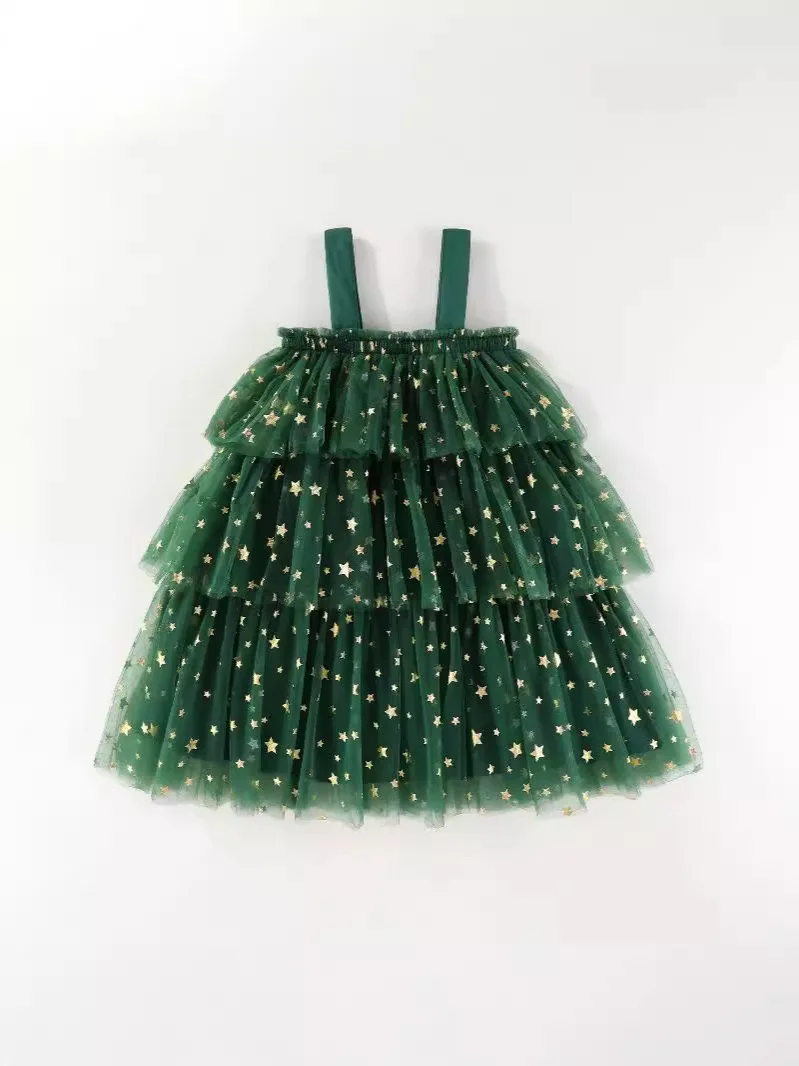 New Product RTS Organza Sleeveless Red Green Color Winter Baby Girl Dresses with Ball for Christmas