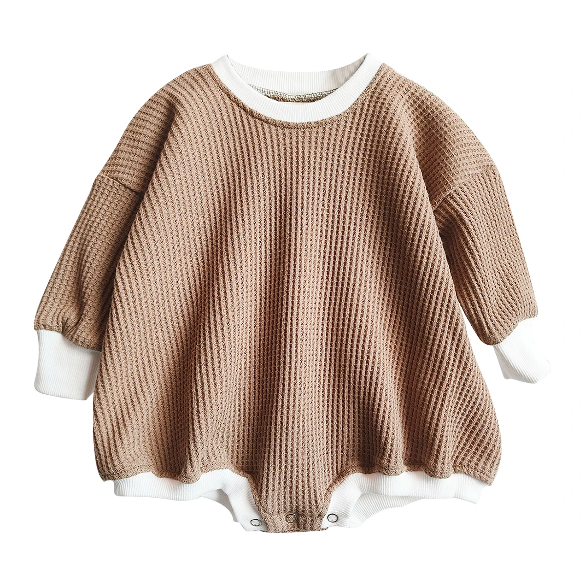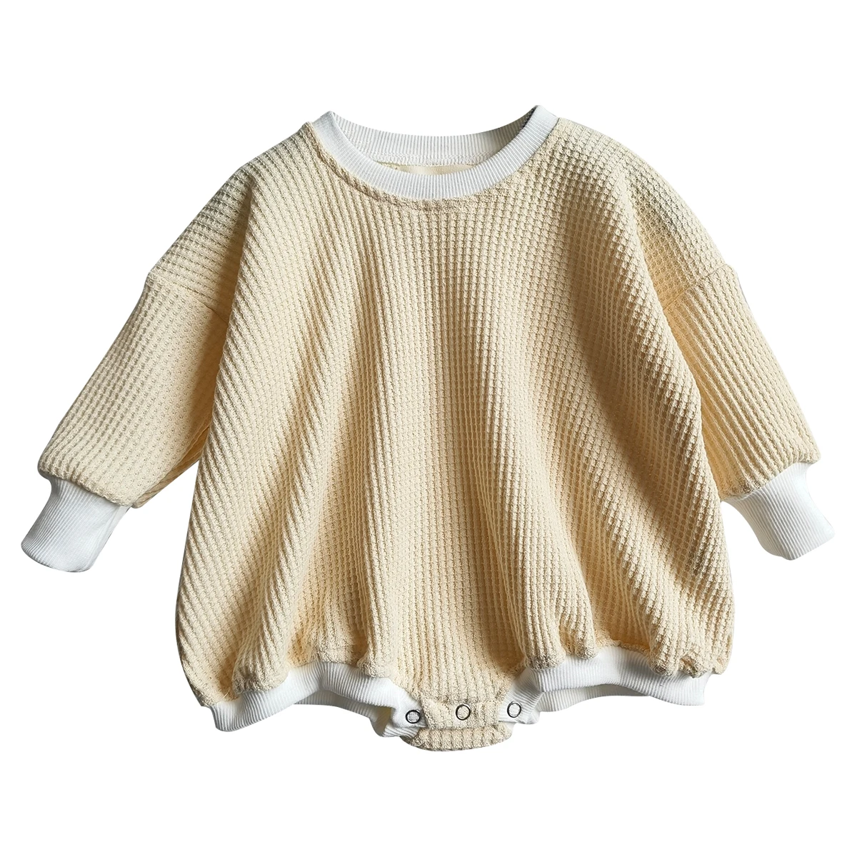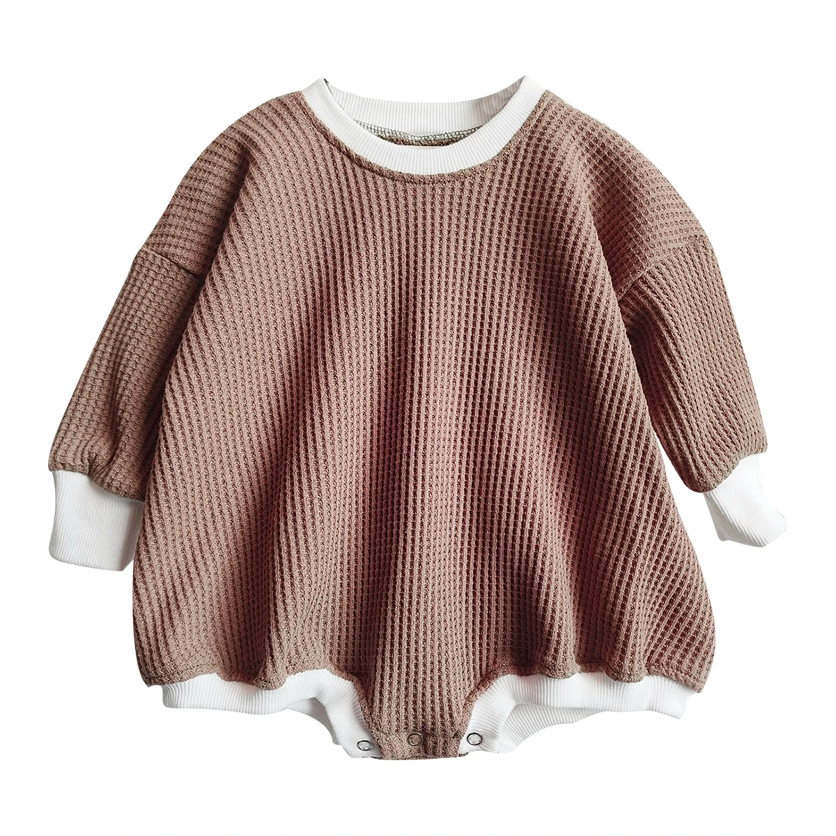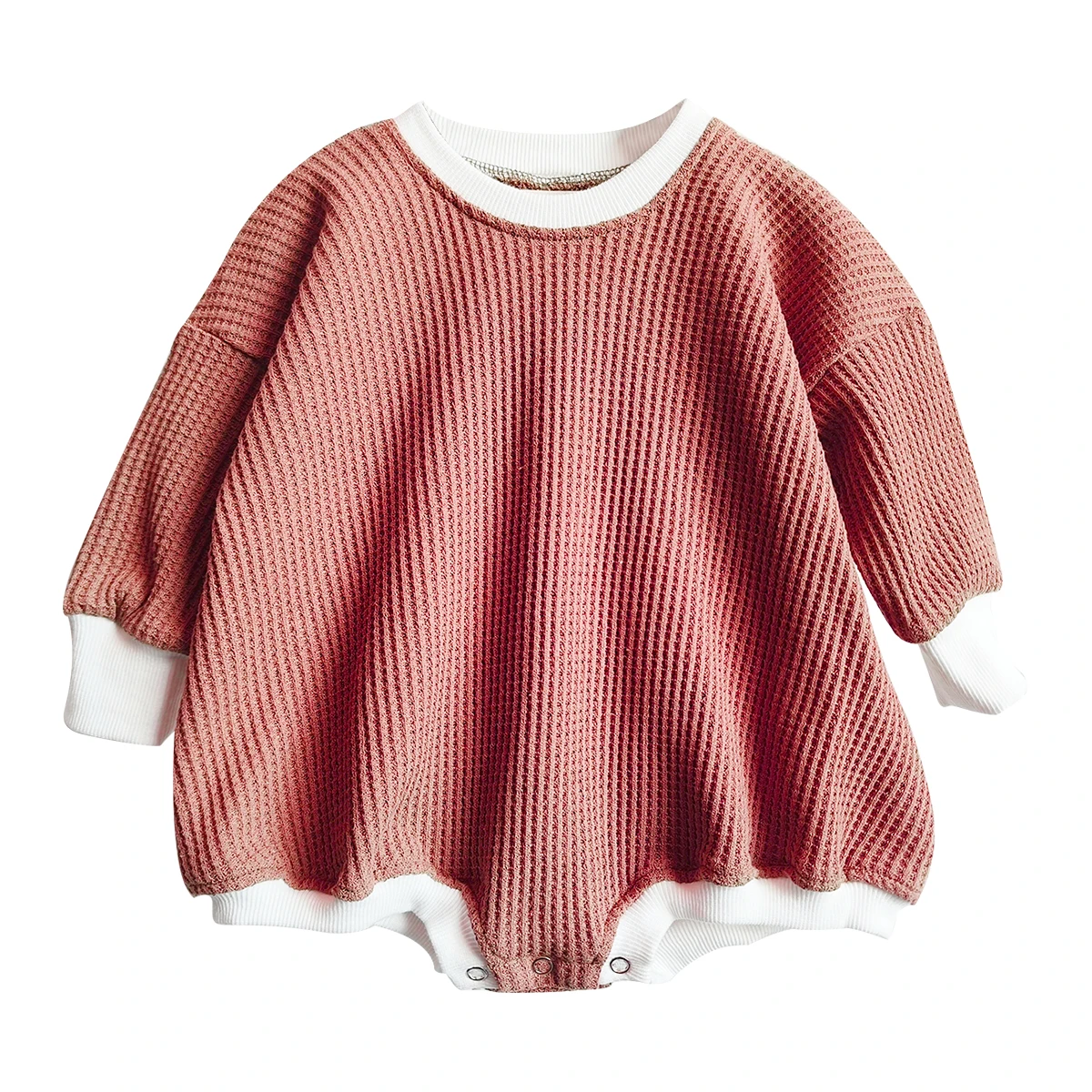 New Product Waffle Cotton Long Sleeve Matching Color Oversize Baby Romper for Autumn