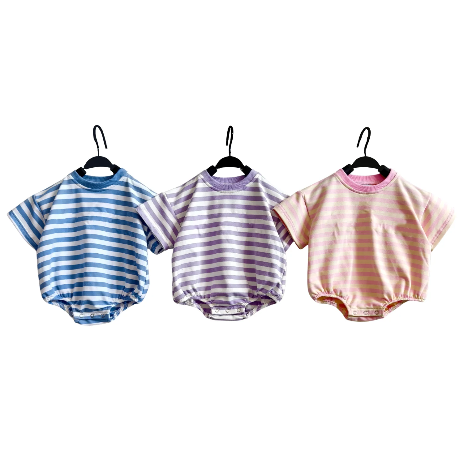 Be the first to review “OEM Baby Boy Girl French Terry Striped Casual Short Sleeve Bubble Romper Snap Button Oversized Summer”