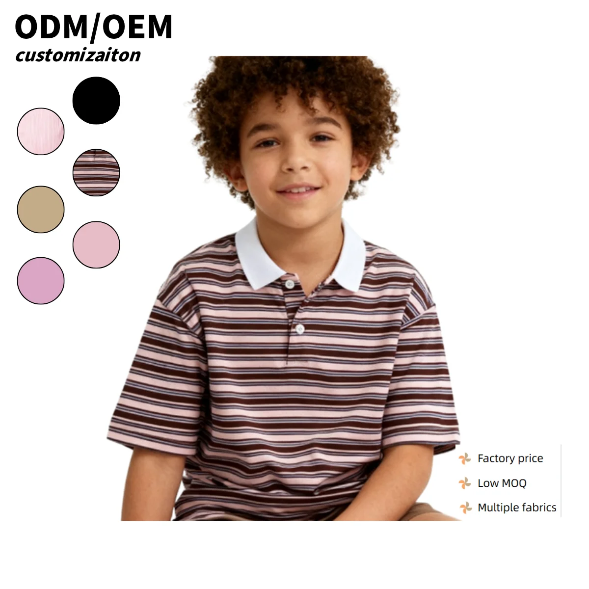 OEM Baby Clothing Boys String Polo Shirt Short Sleeve Performance Casual Striped Golf Shirts