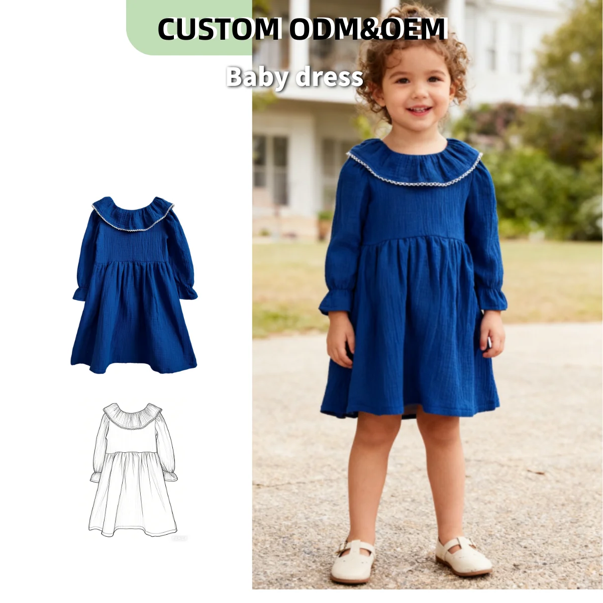 OEM Baby Clothing Toddler Baby Crape Cotton Dress Long Sleeve Autumn Outfit Infant Girls