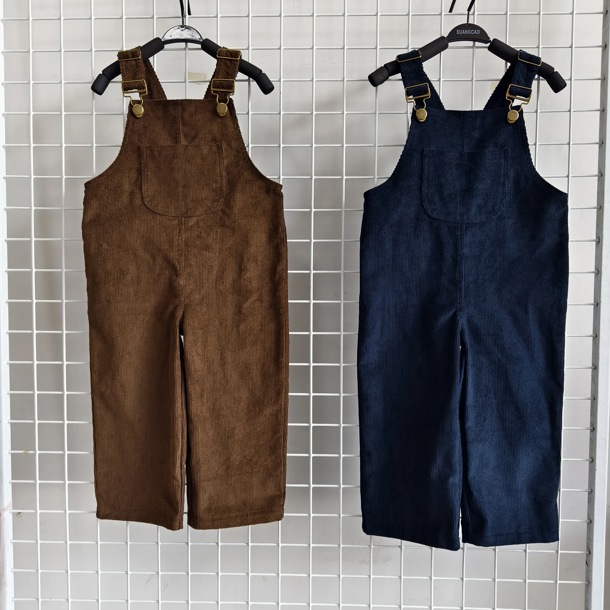 OEM Baby Clothing Wholesale Girls Corduroy Overalls Kids Cute Adjustable Straps Wide Leg Jumpsuit with Pockets