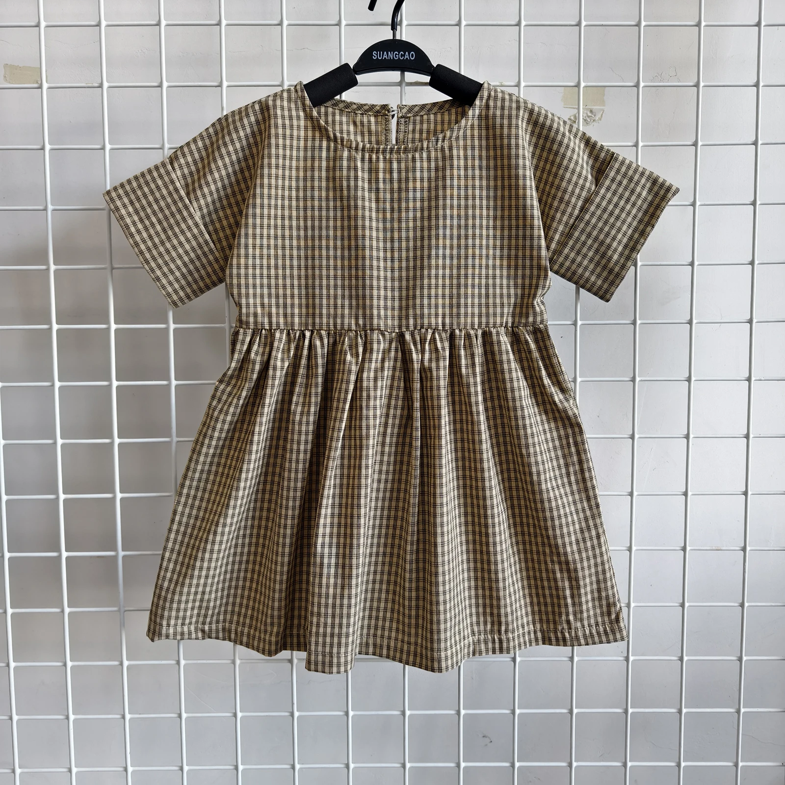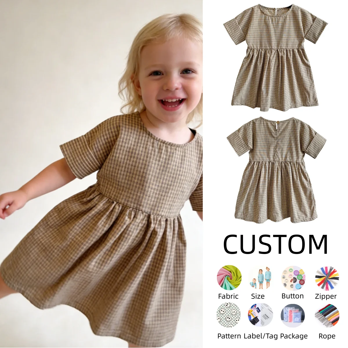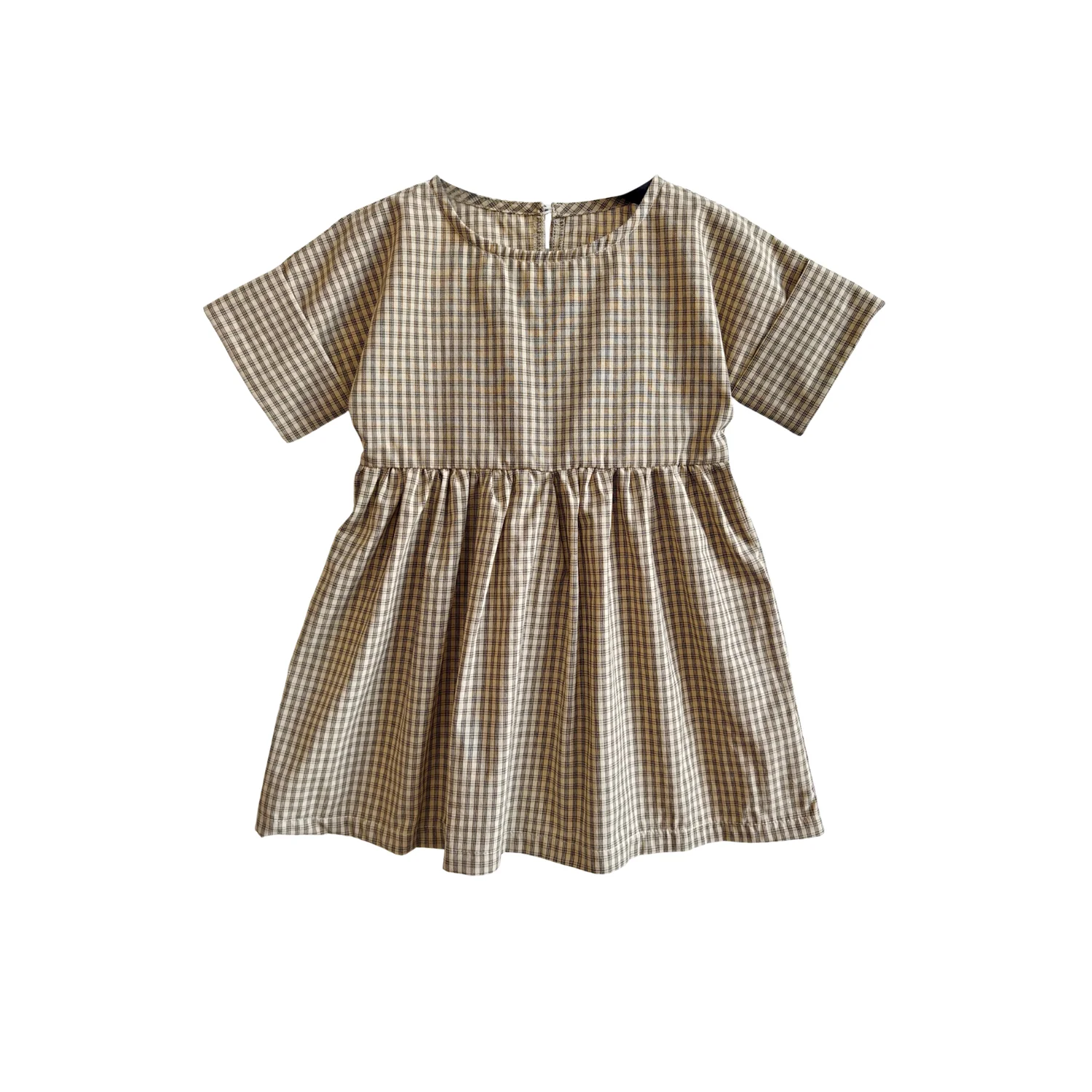 OEM Baby Clothing Wholesale Little Girls Dresses Short Sleeve Cotton Plaid Kids Summer Dress