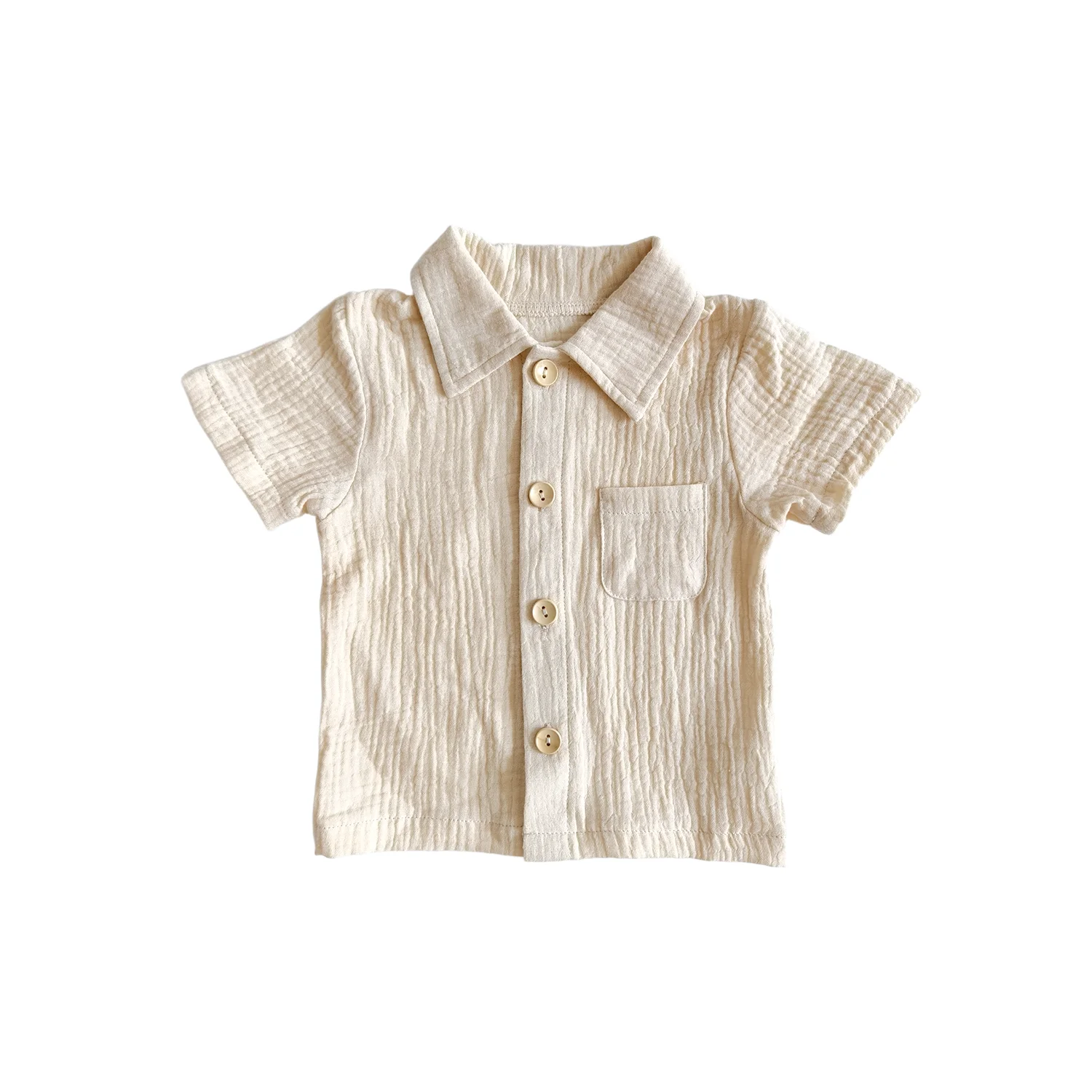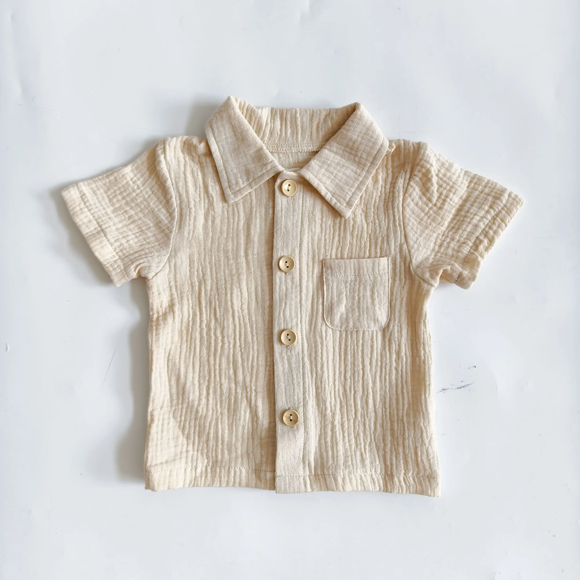 OEM Baby Clothing Wholesale Toddler Baby Boy Crape Cotton Outfit Button Down Shirt Cute Infant Newborn Photoshoot Clothes