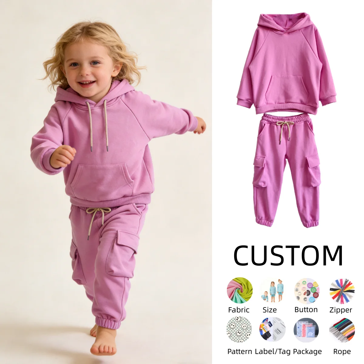 Be the first to review “OEM Kids Clothes Set Baby Clothes for Girls Boys Solid Color 100% Cotton Sweatshirt and Sweatpants Outfits Set”