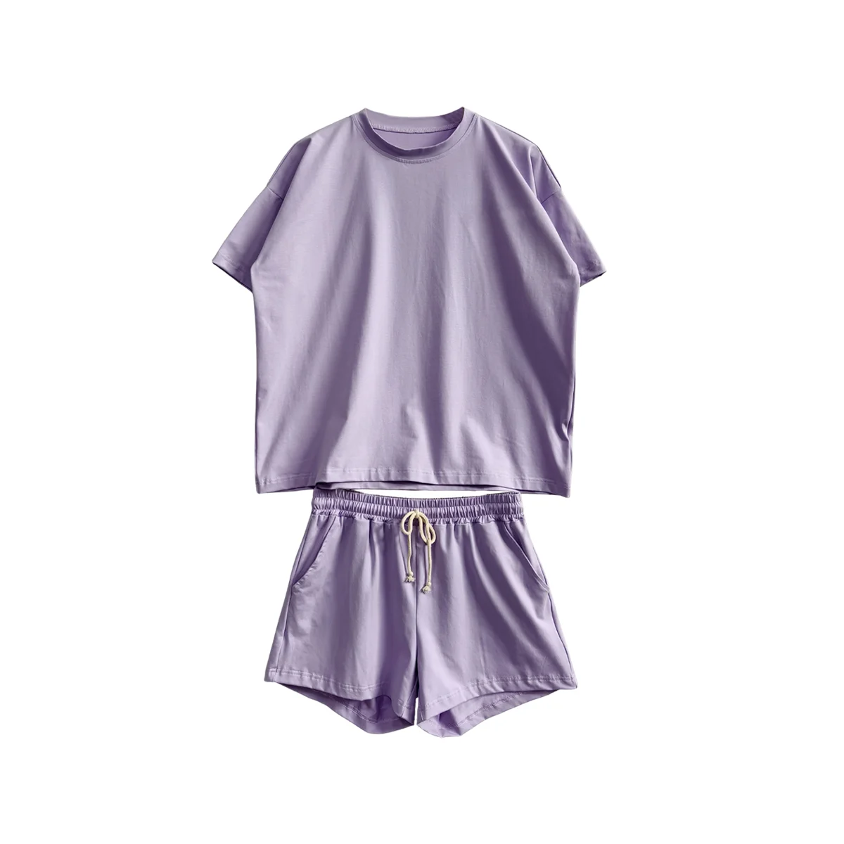 OEM Kids Clothes Set Boys Girls Summer Clothes Set Cotton Solid Plain Short Sleeve T-Shirt Tops Shorts Cute Outfits Set