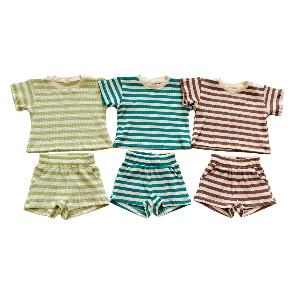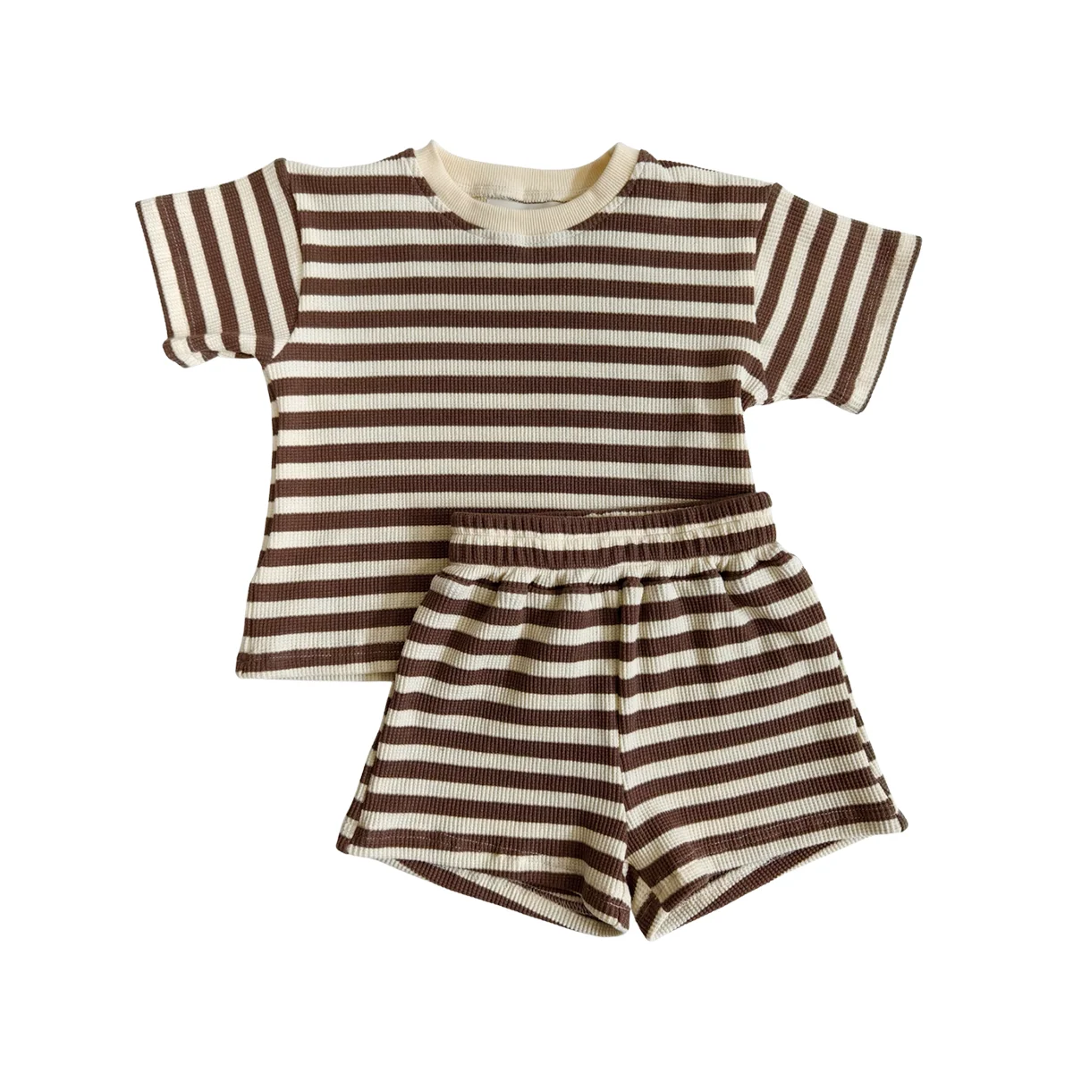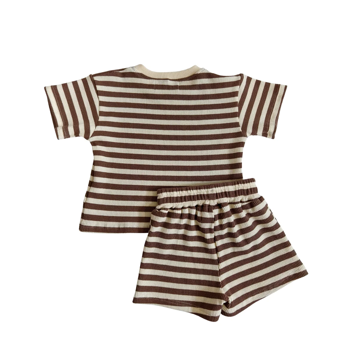 OEM Kids Clothes Set Customized Girls 2 Piece Outfits Summer Boys Striped Batwing Sleeve Top and Short Sets