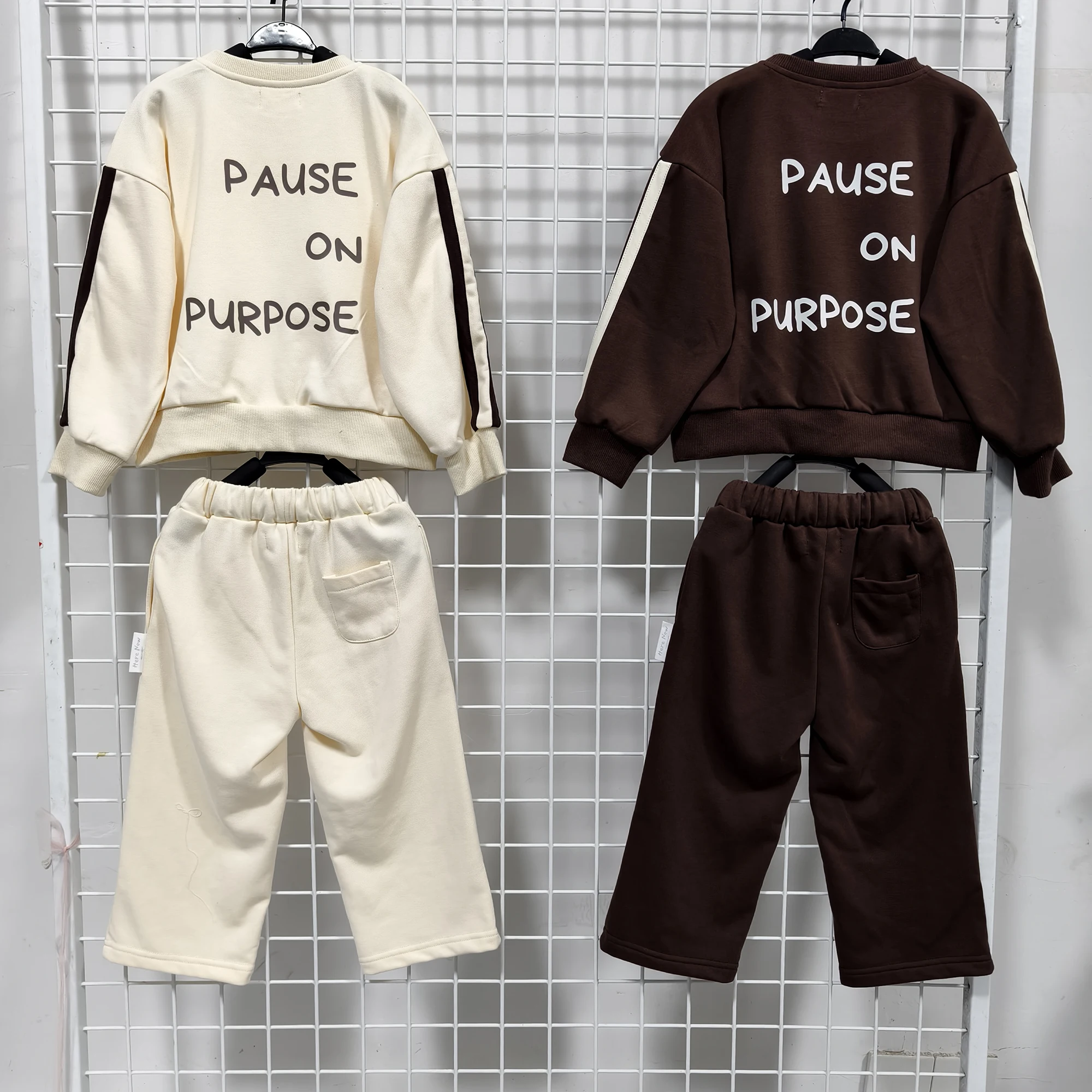 OEM Kids Clothes Set Toddler Baby Boy Girl Long Sleeve Crewneck Pullover Sweatshirt Sweater Outfits Solid Color Casual Clothes