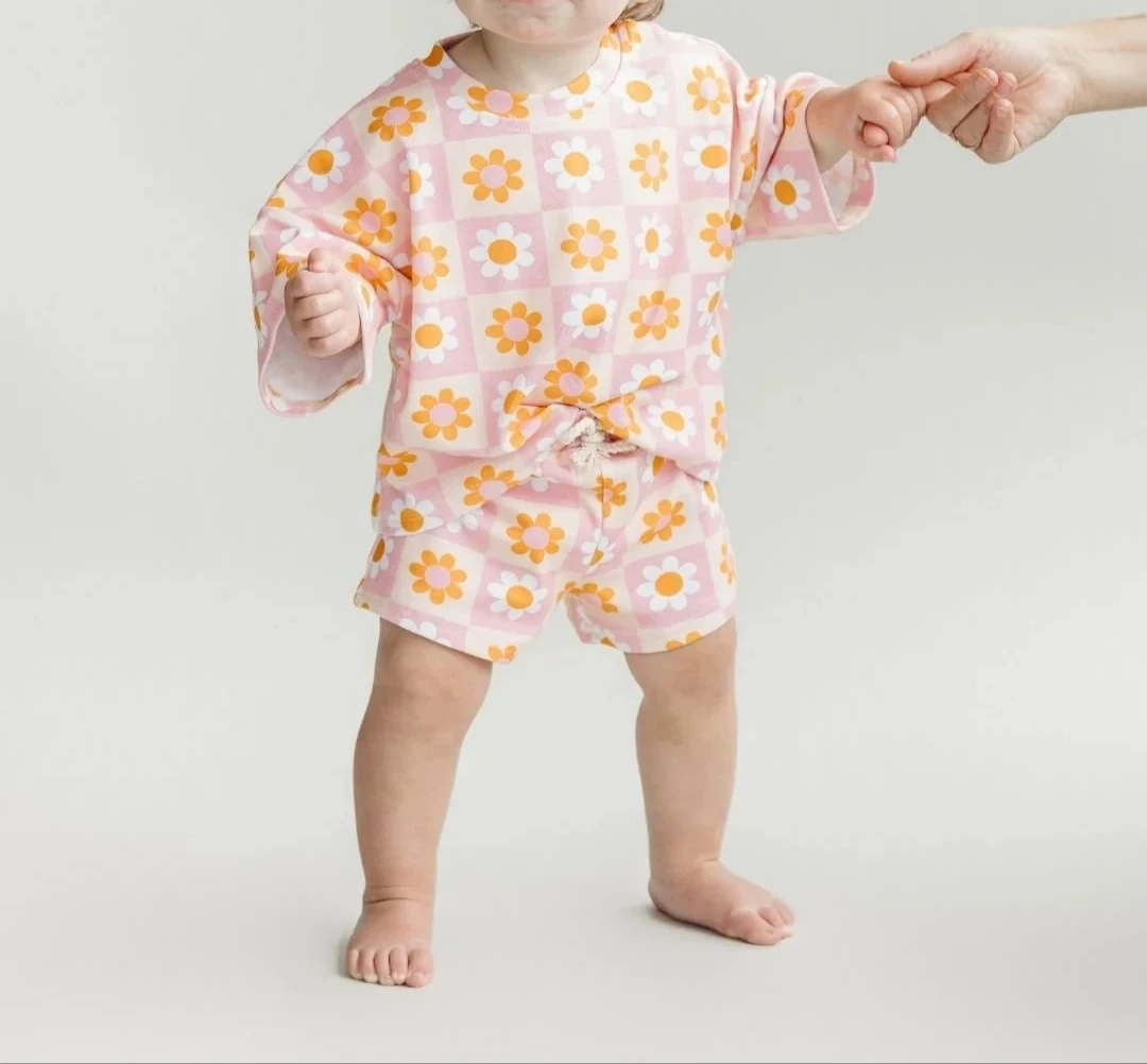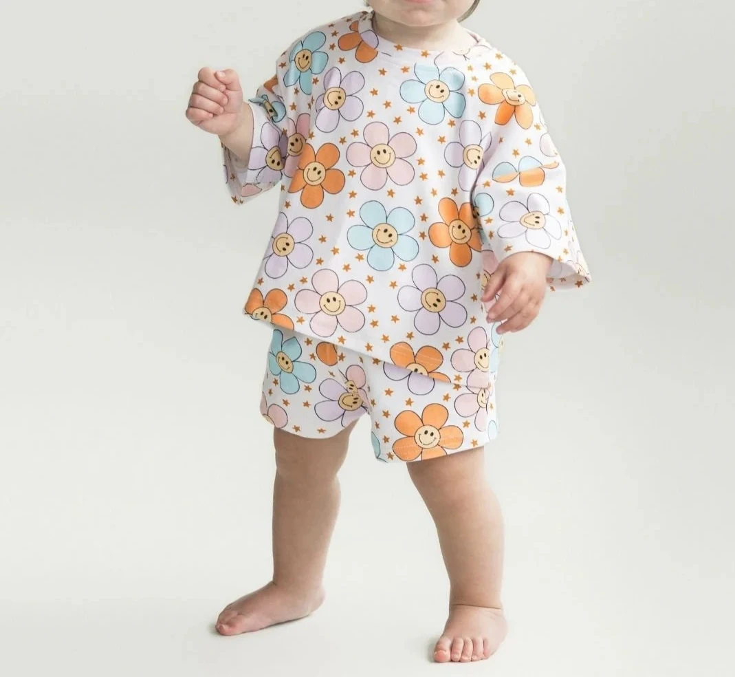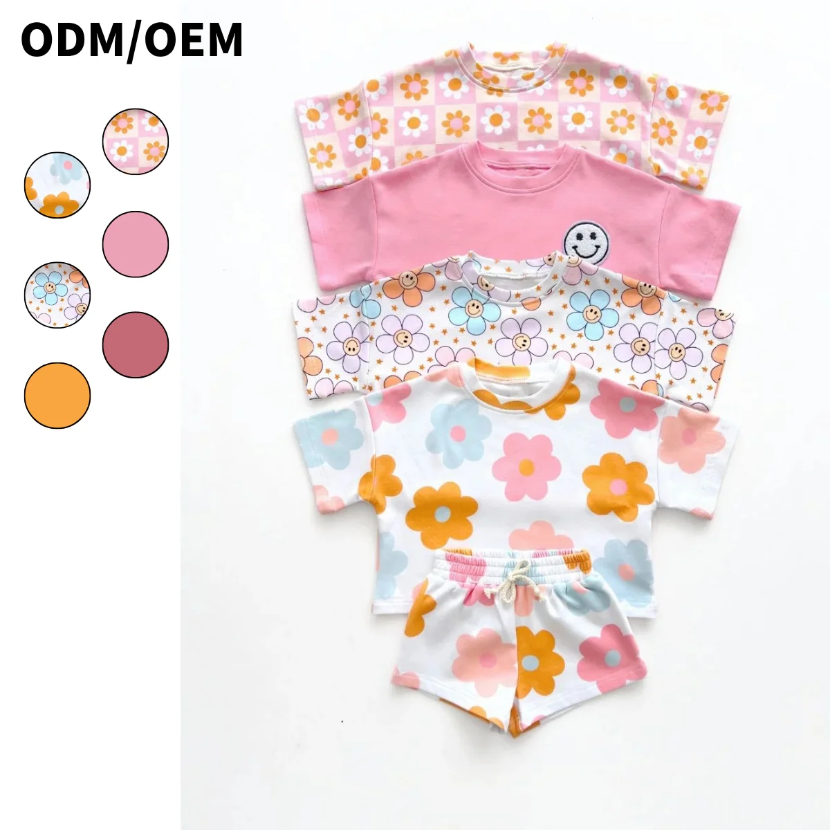 OEM Summer Kids Girl Flower Print Soft Breathable Shorts Set 95% Cotton 5% Spandex Oversized Style Toddler Clothing