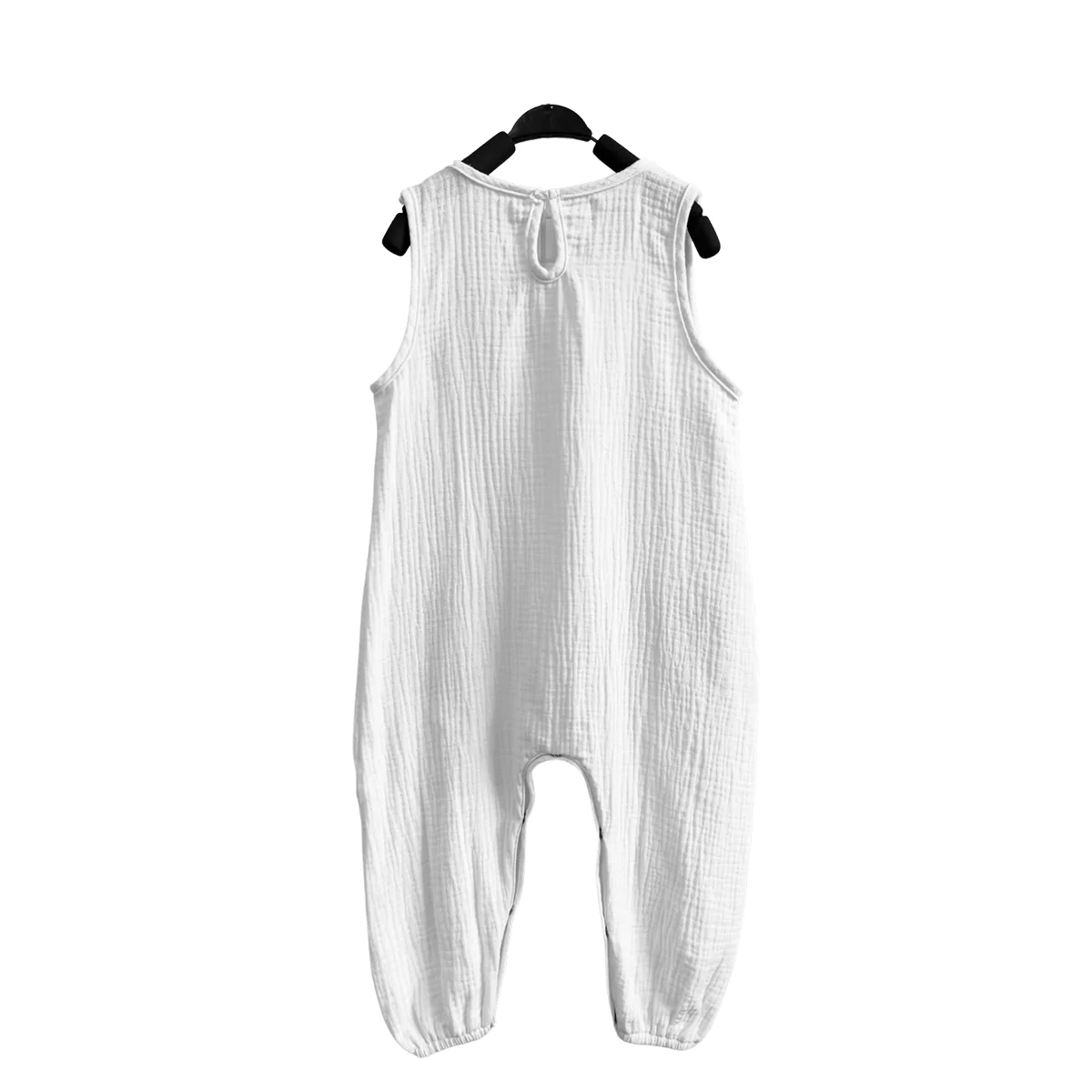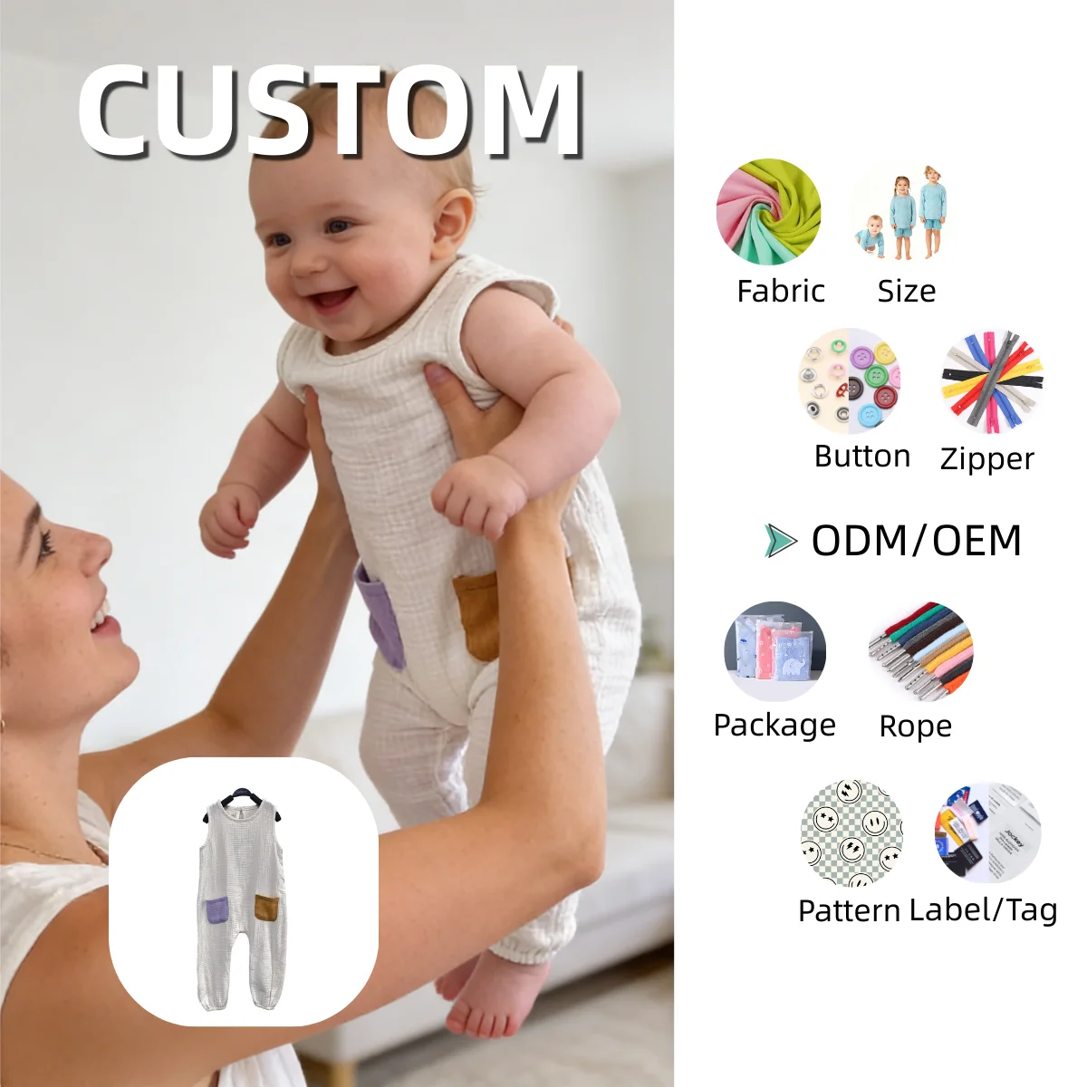 OEM Summer Sleeveless Crape Cotton Romper With Pockets Lightweight Breathable Summer Playsuit for Baby