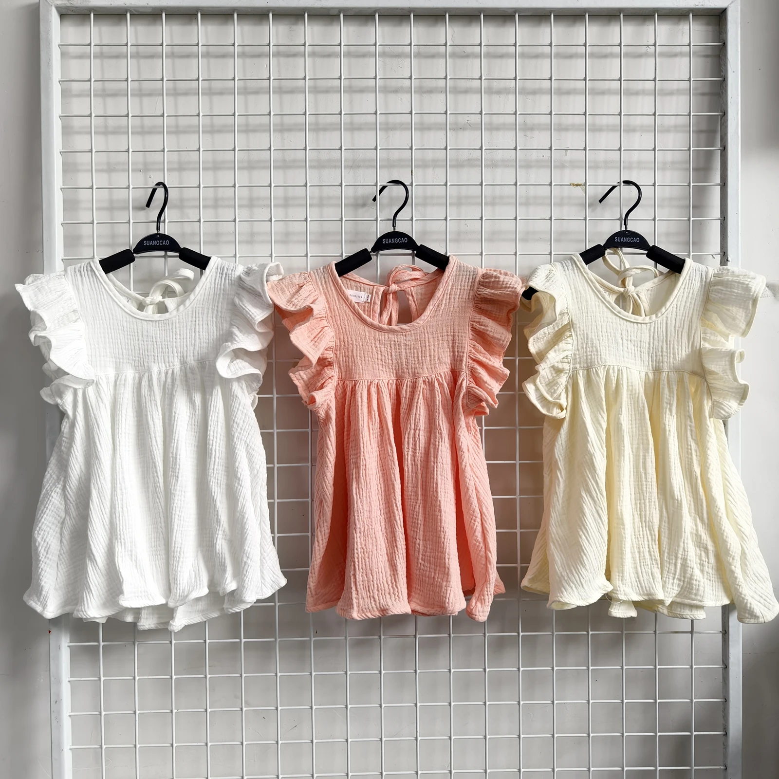 Organic Crepe Dress for Kids Customize Children’s Clothing Girls Wholesale Ruffle Sleeve Children Dress