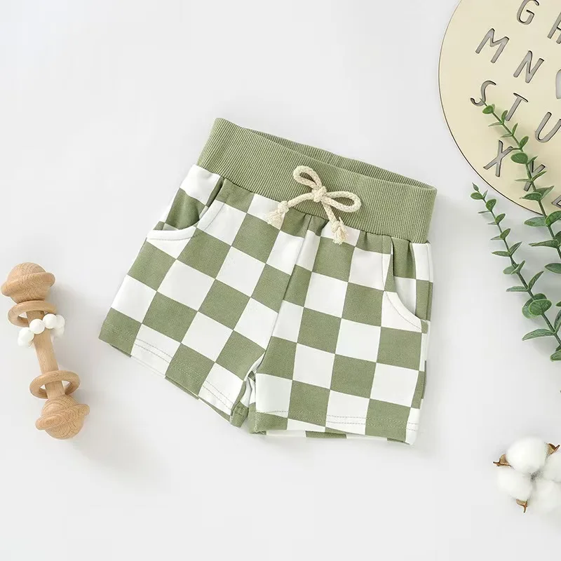 Ready to Ship Kids Checkerboard Long Sleeve Top and Shorts Set Spring Autumn Plaid Baby Clothing Set