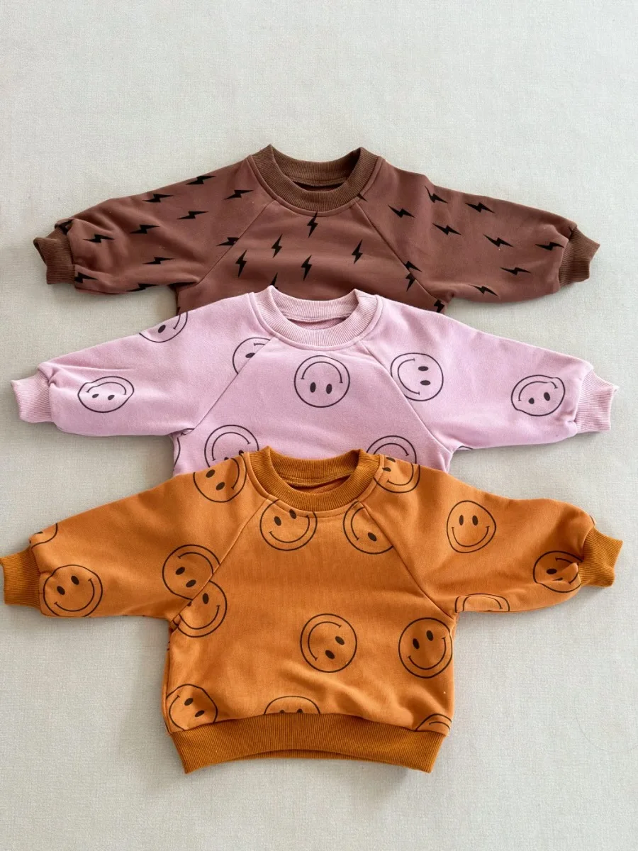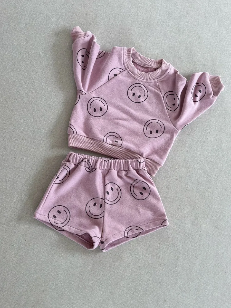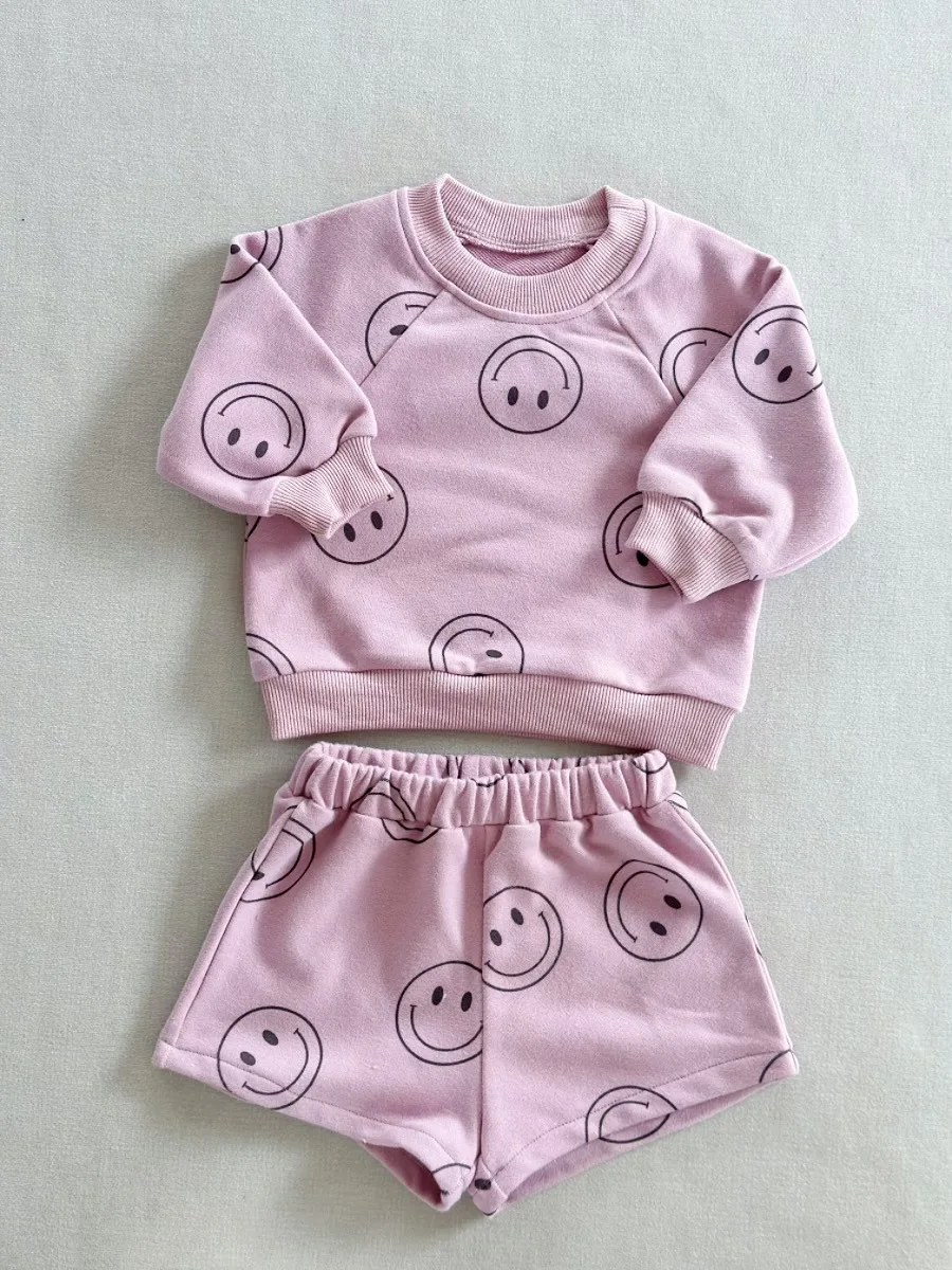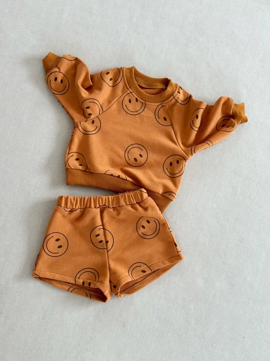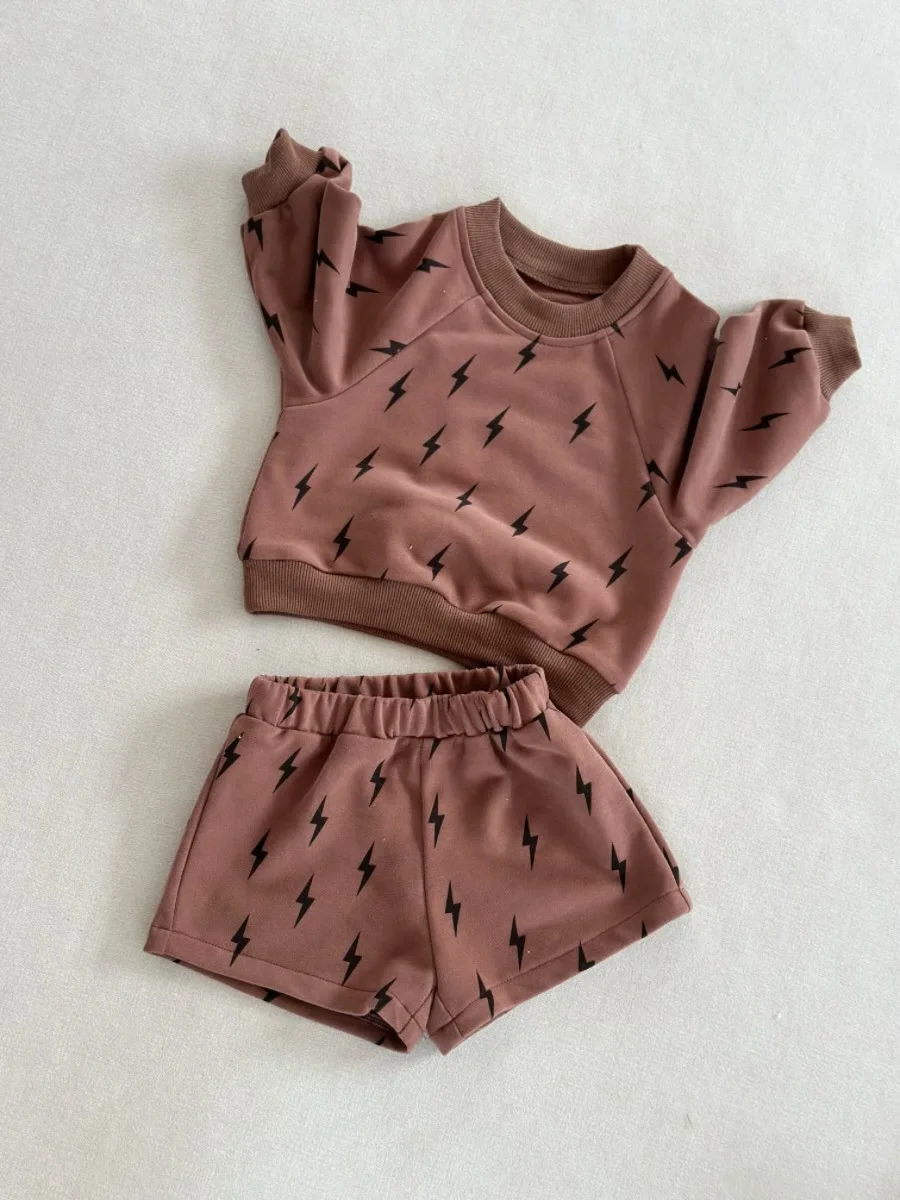 Ready to Ship Kids Set Autumn New Style French Terry Lightning Casual Sport Crewneck and Shorts 2-piece Set