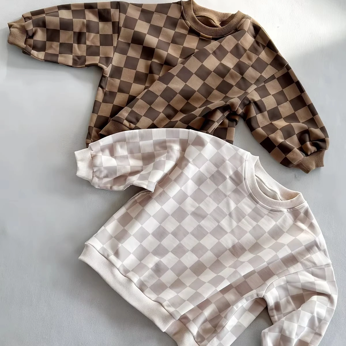 Be the first to review “Ready to Ship Spring Long Sleeve Children Unisex Oversized Loose Checkboard Striped Sweatshirt French Terry Pullover”
