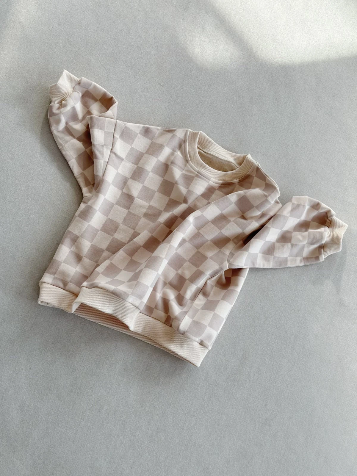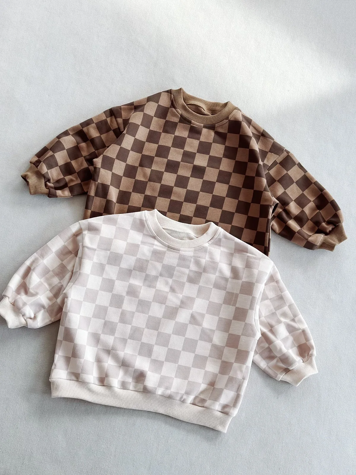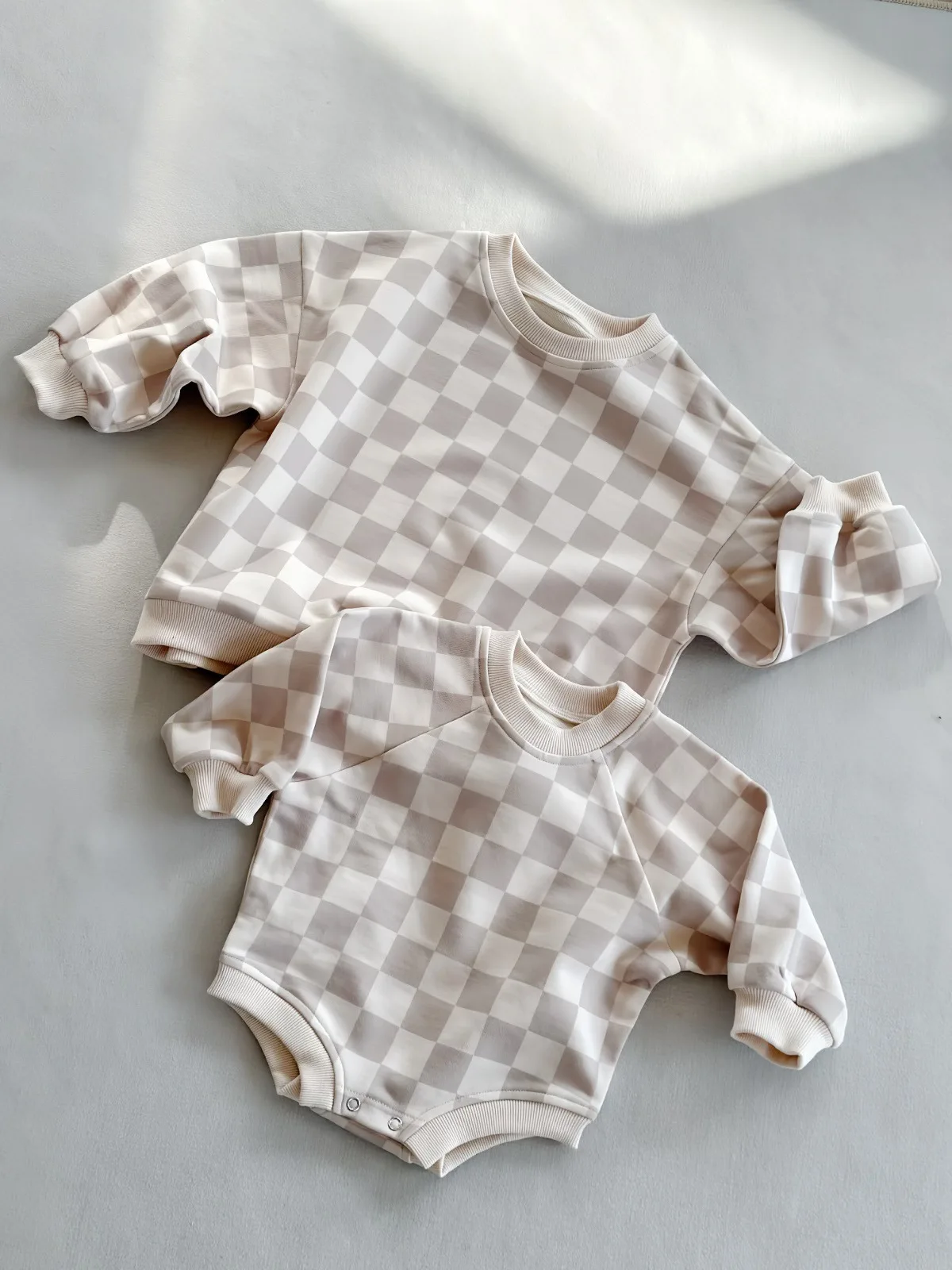 Ready to Ship Spring Long Sleeve Children Unisex Oversized Loose Checkboard Striped Sweatshirt French Terry Pullover