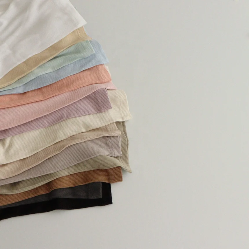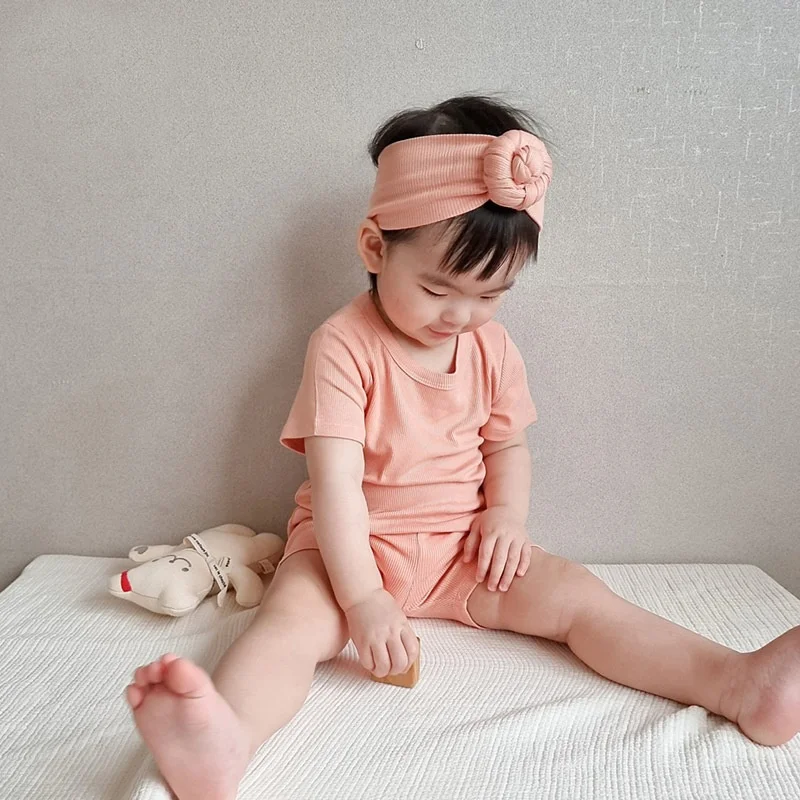 RTS Elastic Ribbed Cotton Baby Kids Summer Clothing Set 2 Pieces Pajamas Sleepsuit
