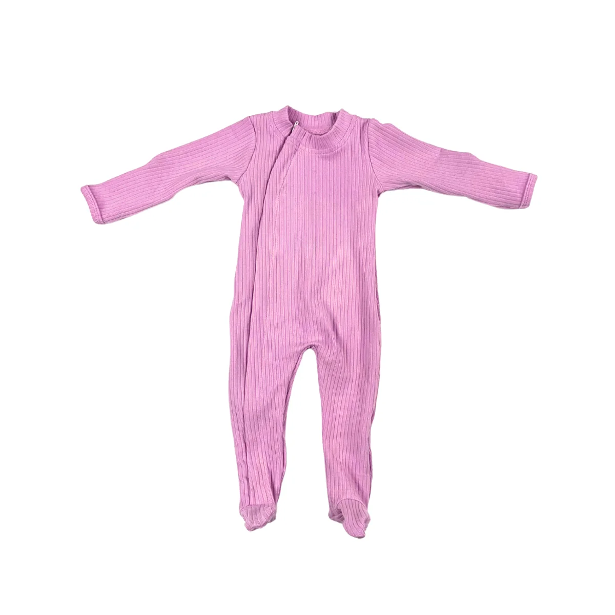 Spring New Breathable Solid Color Baby Ribbed Jumpsuit Pajamas Round Neck Ribbed Cotton Cute Climbing Clothes