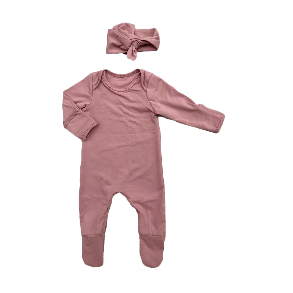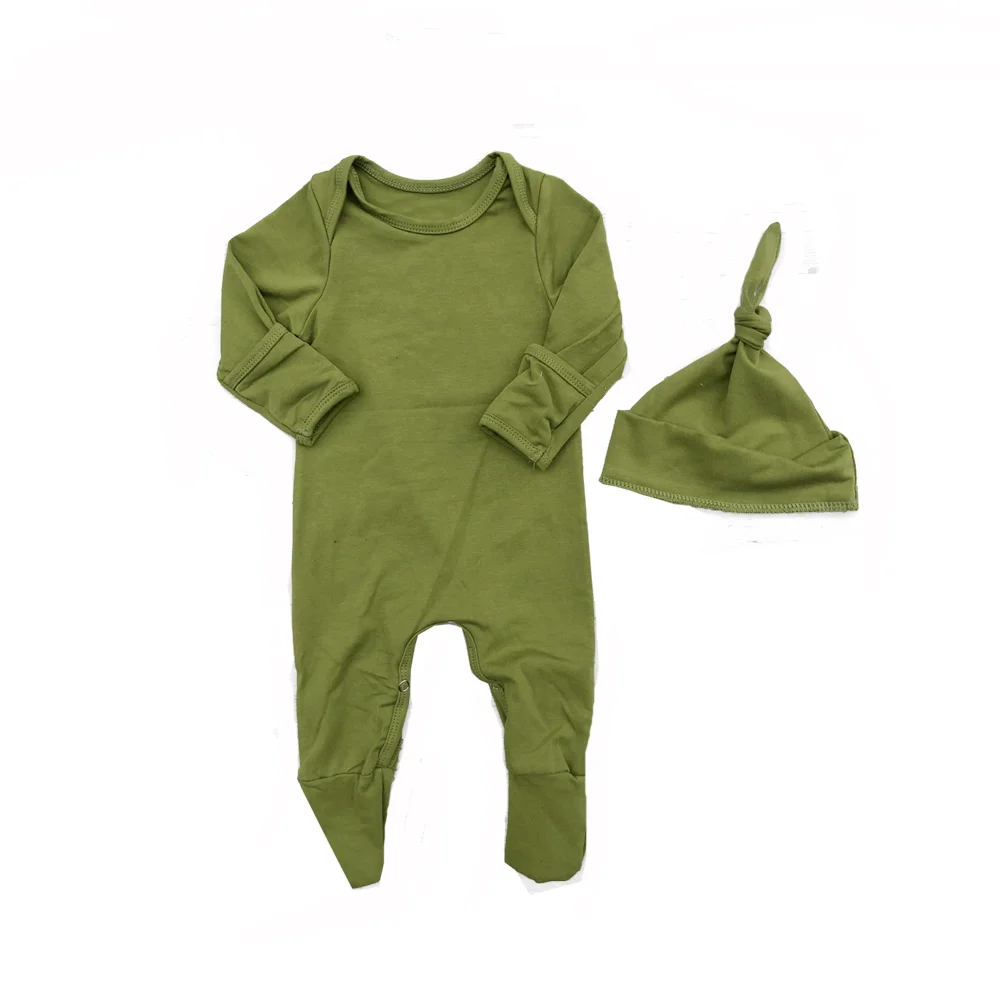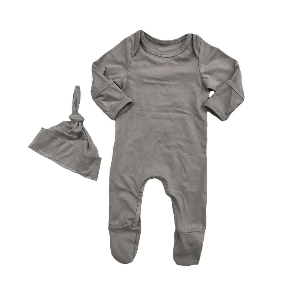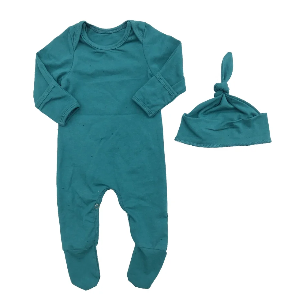 Spring Toddler Blank Cotton Long Fold Sleeve Legging Wrap Feet Bodysuit Match Hat Even Feet Baby Romper