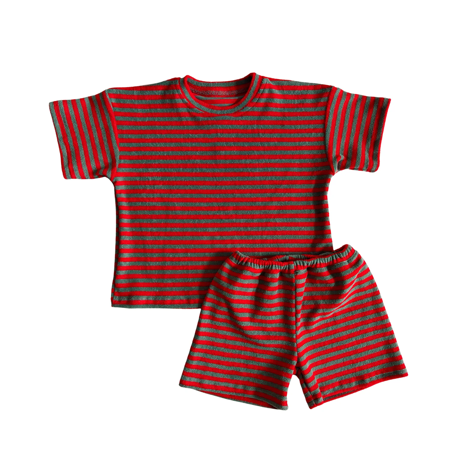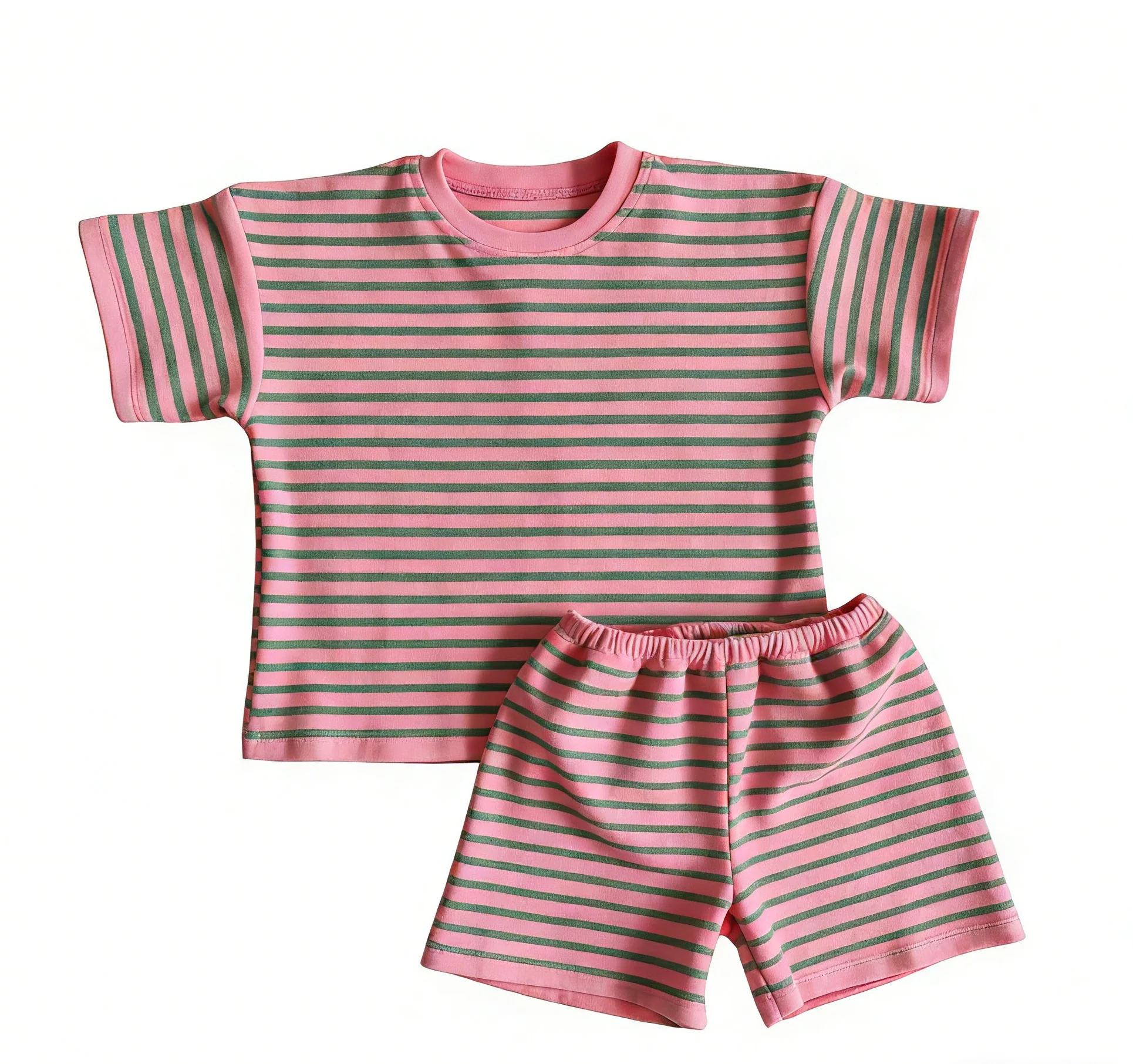 Summer 2-Piece Clothing Striped Towel Cloth Girls’ Set Baby Outfit Kids Clothes Set Children’s Suit Shirt & Shorts Set for Kids’