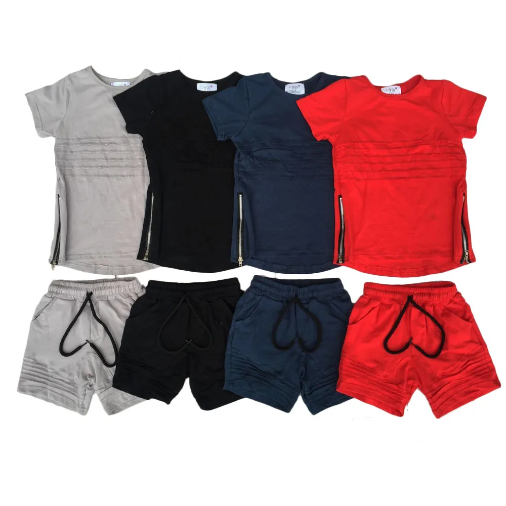 Summer Baby Boys Short Sleeve T Shirt Cotton Scoop Hem Side Zipper Casual Tops