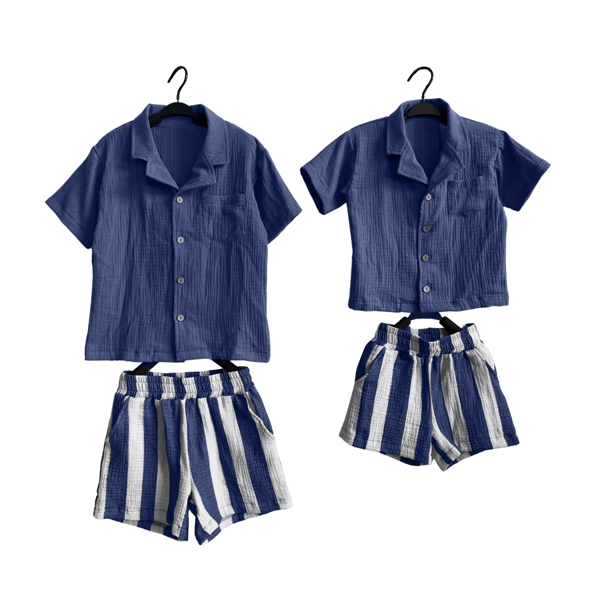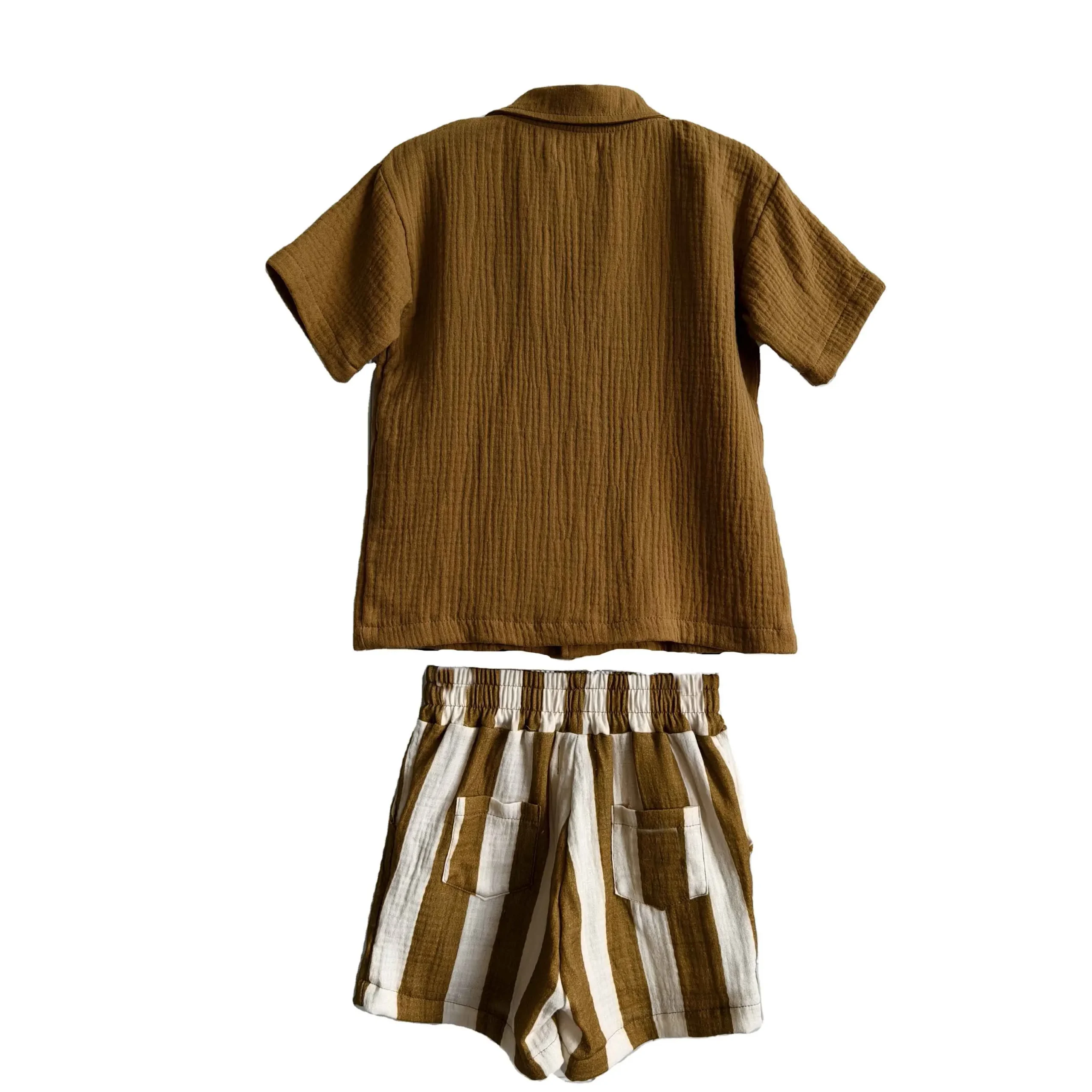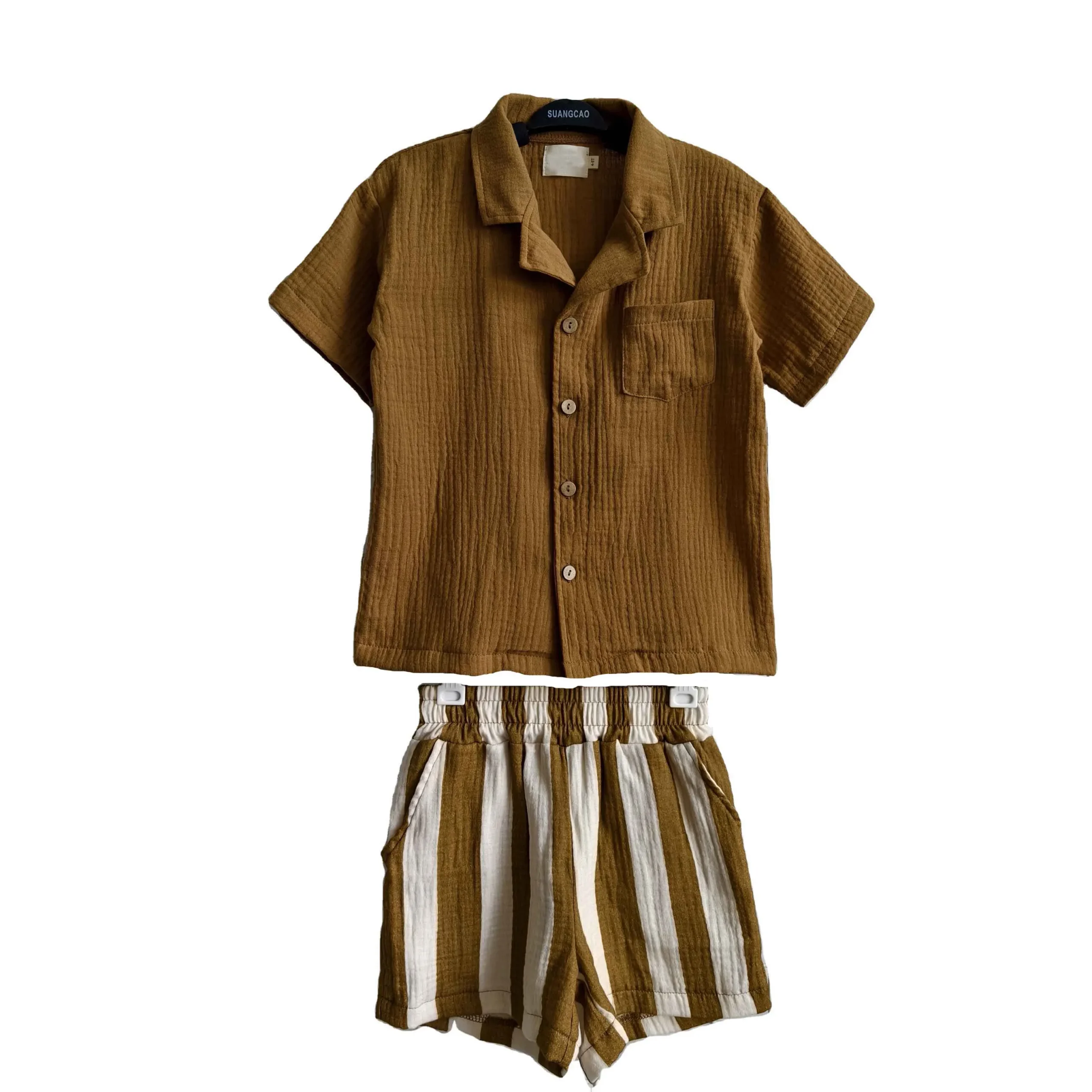 Summer Children Girls Set Printed T-shirt Short Sleeve Shorts Set Boys Cute Crepe Casual Toddler Clothing Set