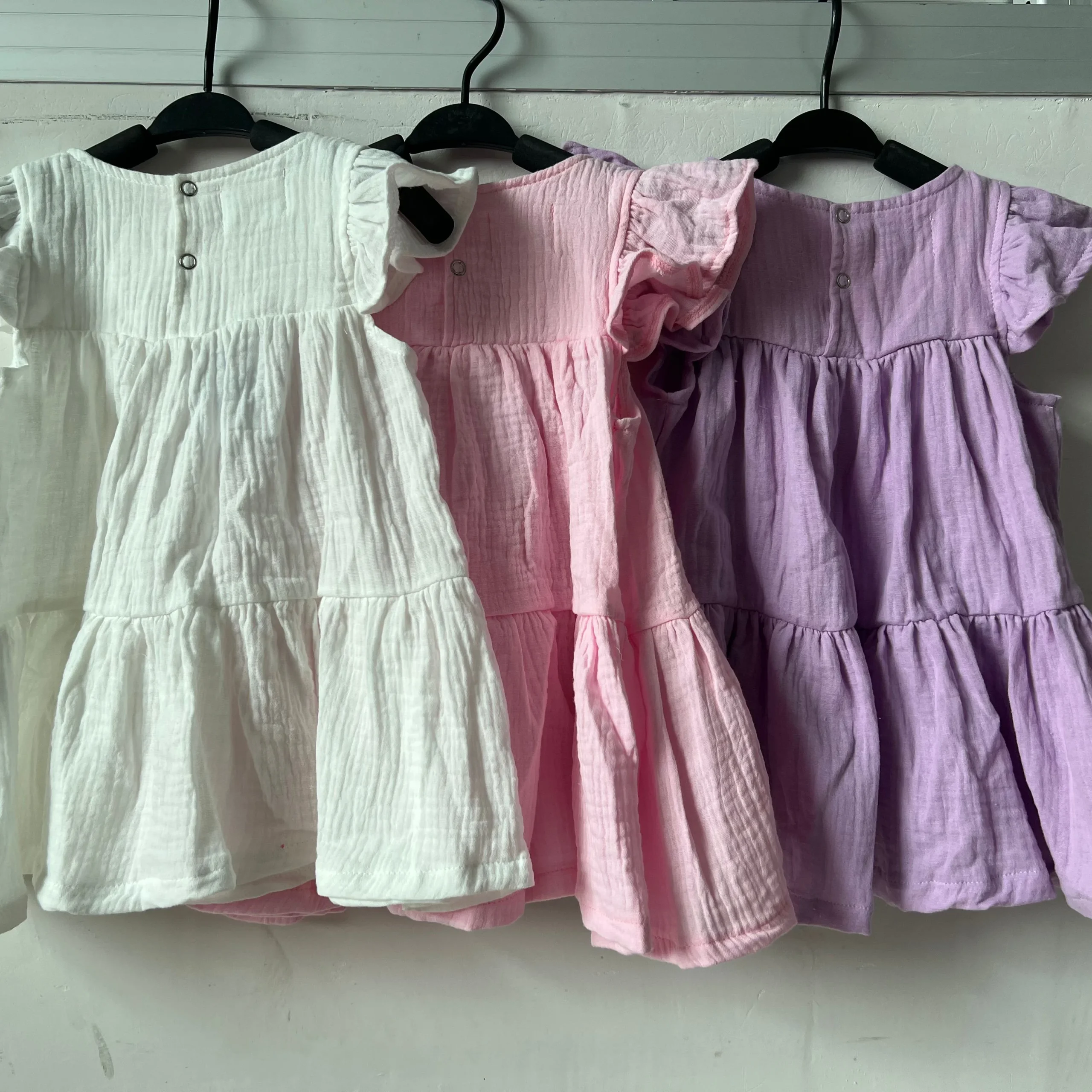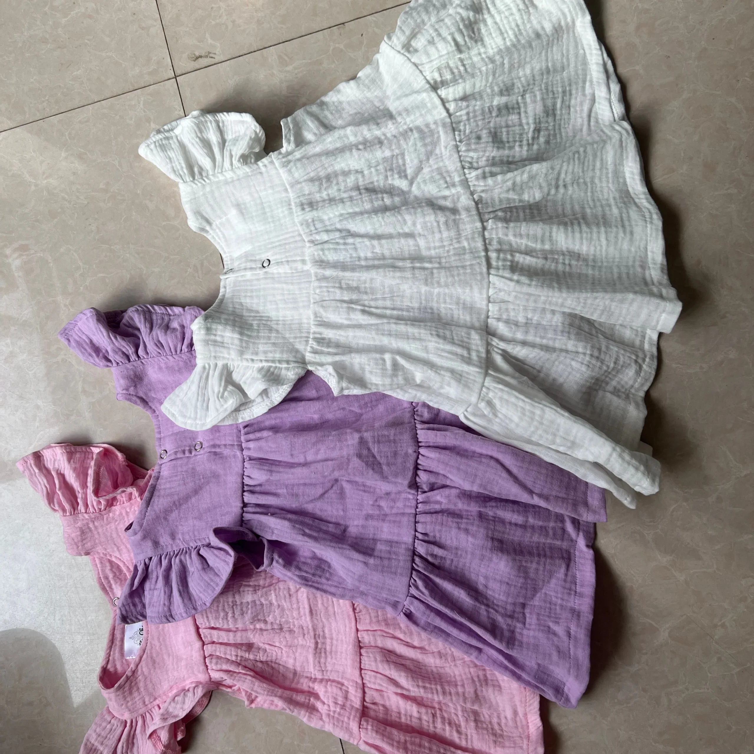 Summer Cute Girl Pleated Flyaway Sleeve Dress Muslin Cotton Loose Dress Princess Style Dress Kid Outfit