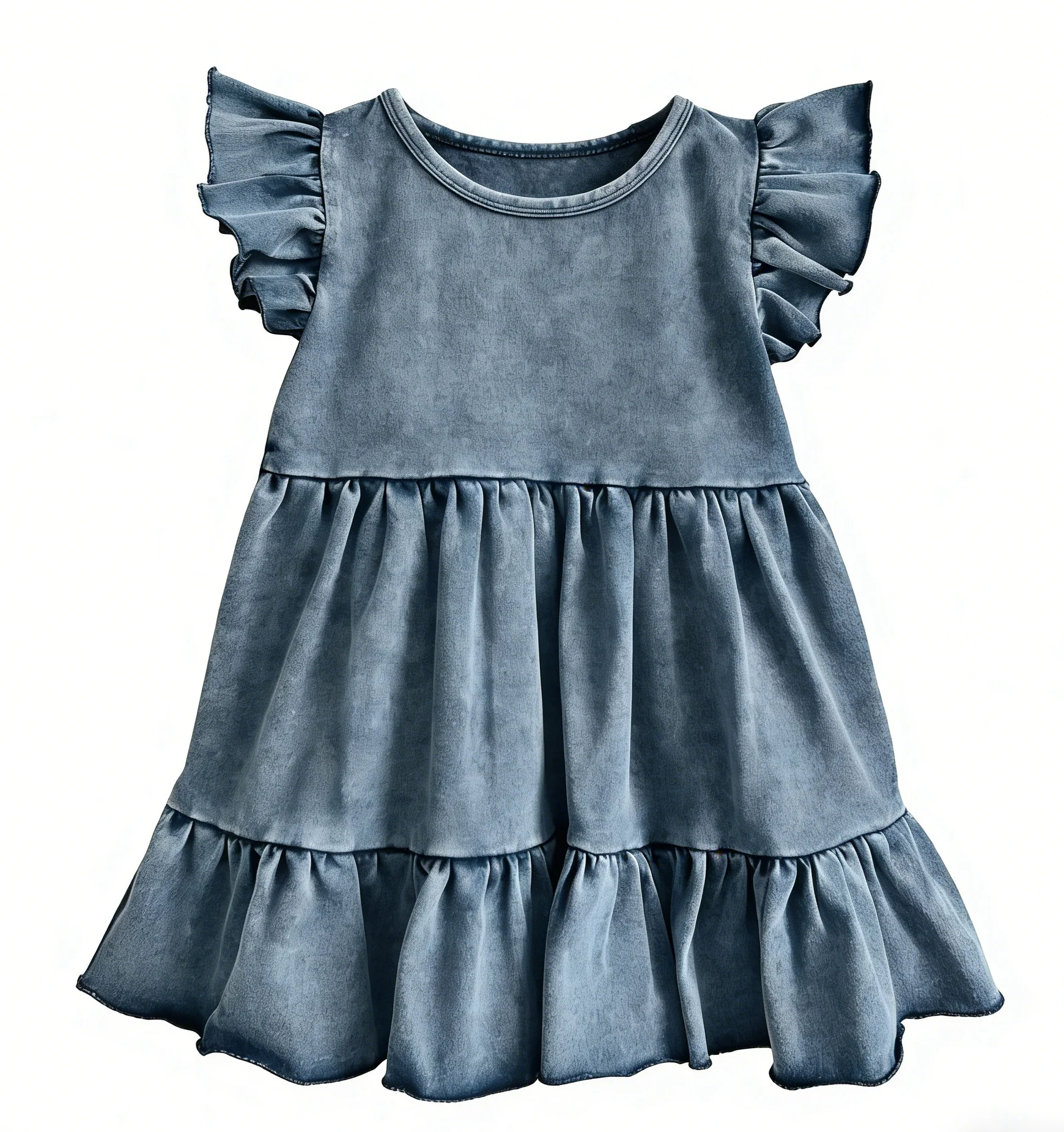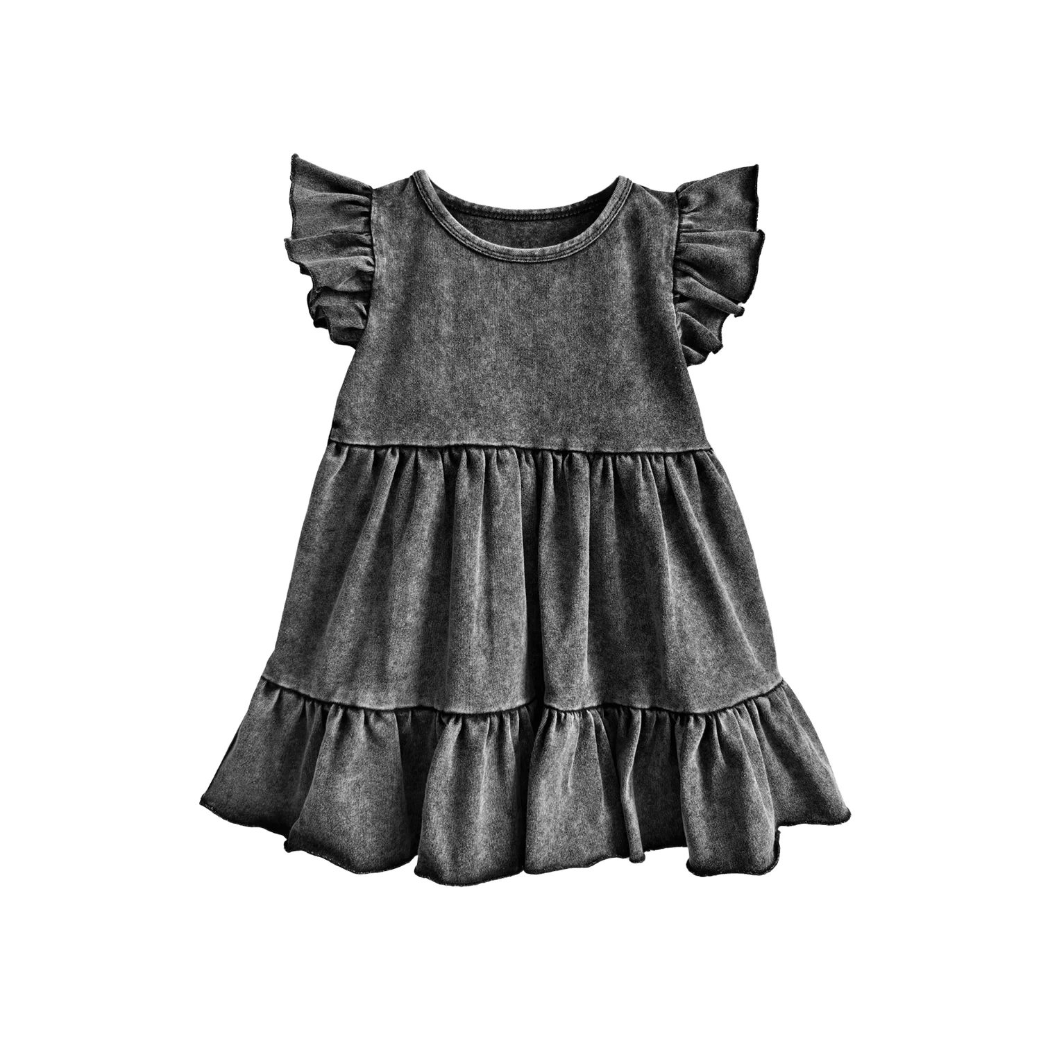 Summer Girls’ Skirt Wholesale Acid Washed Dress Girl’s Skirt Short Sleeve Skirt Pleated and Pieced Skirt Baby Short Dress