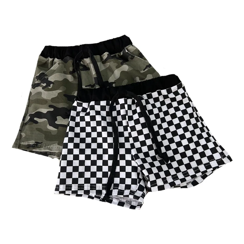 Summer Kids Boys Camo Checkerboard Pattern Shorts Knitted Cotton Baby Toddler Casual Cool Shorts