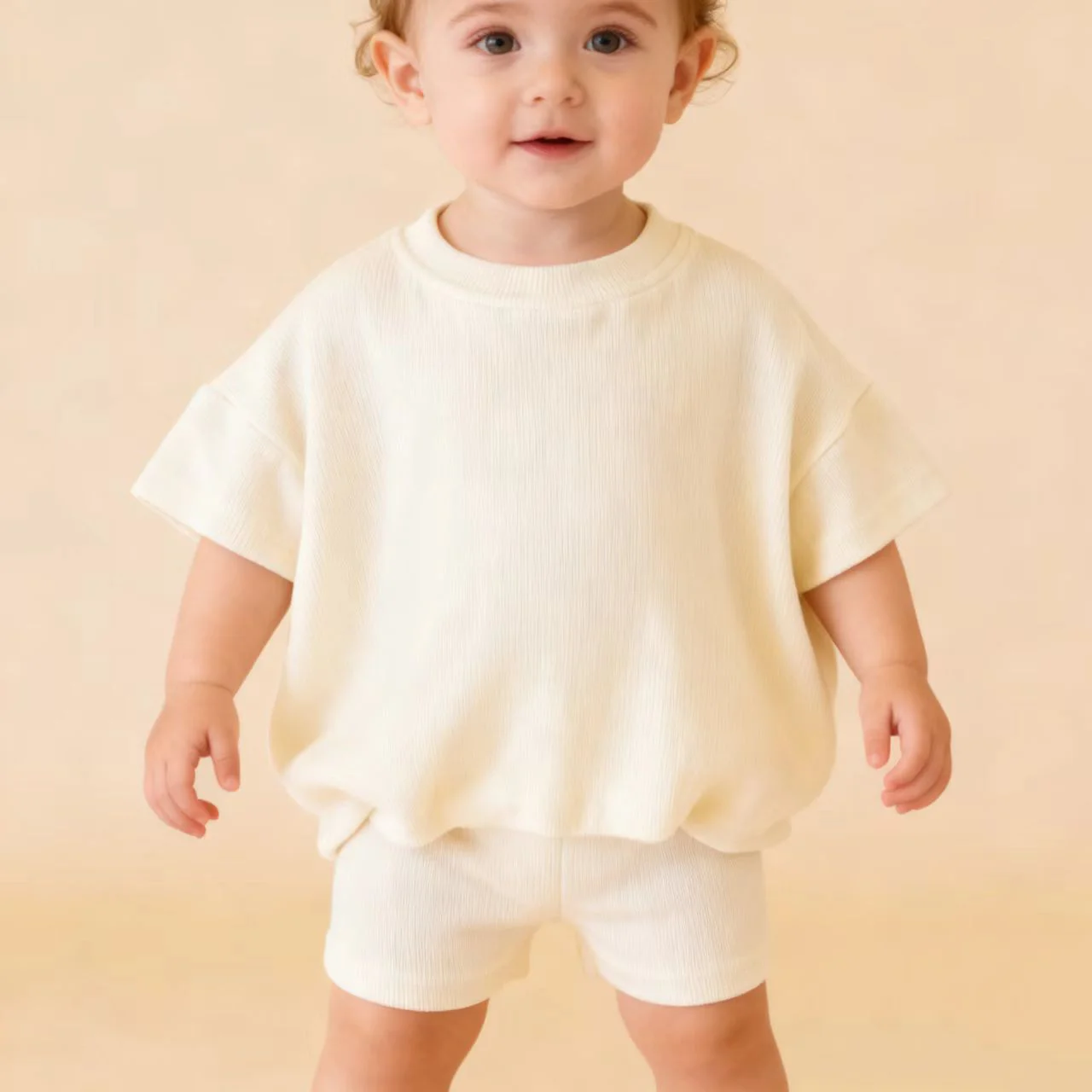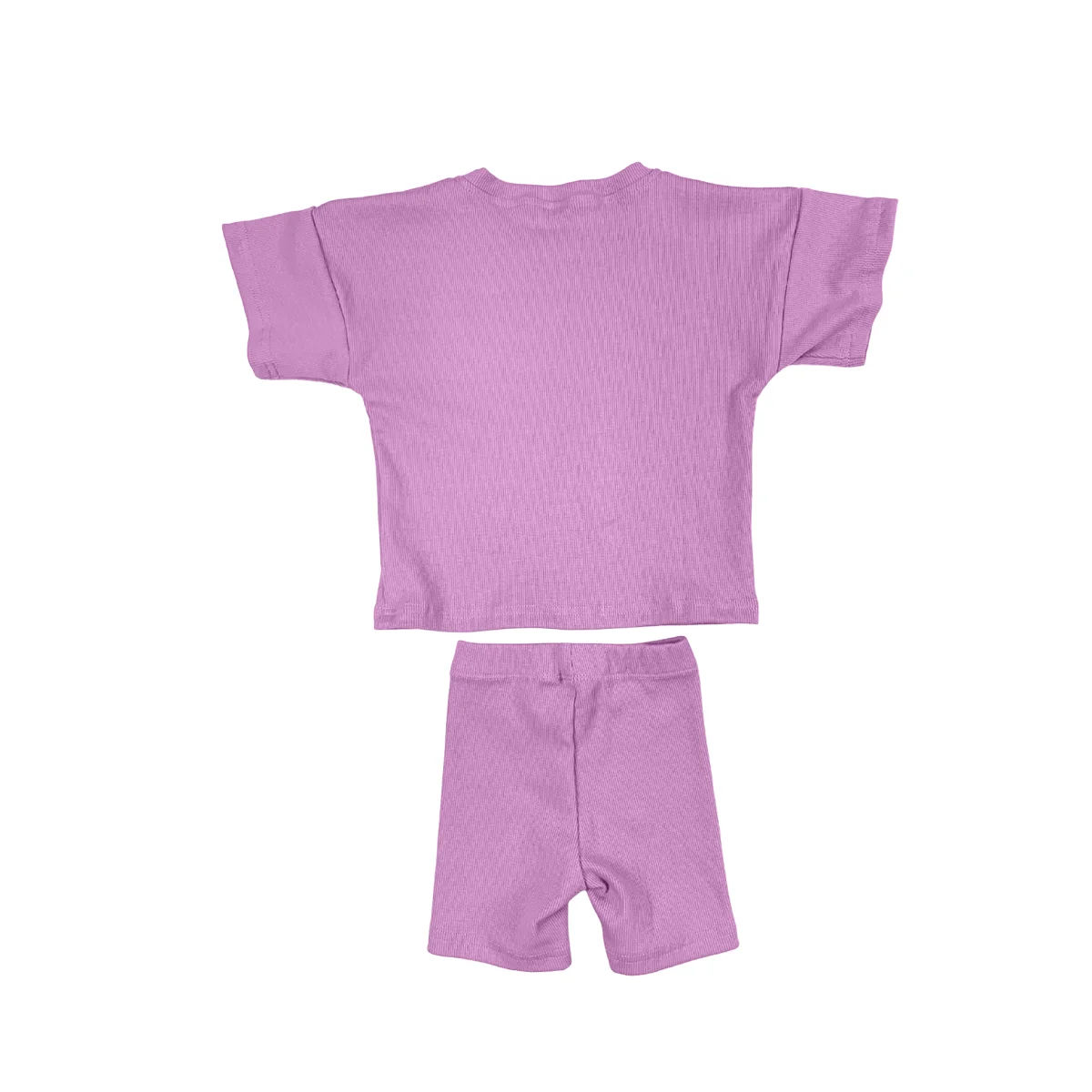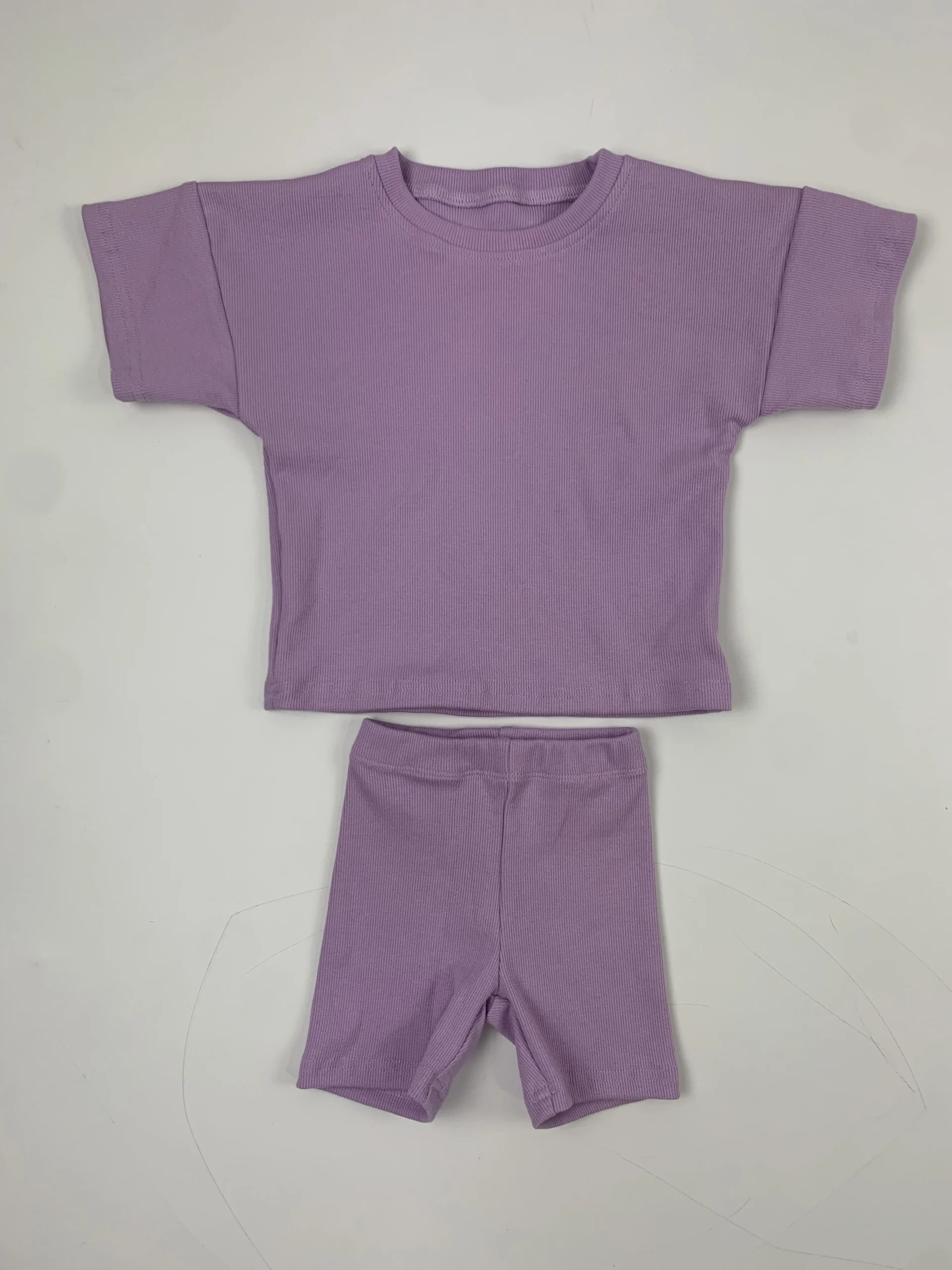 Summer Kids Ribbing Cotton Oversized T-shirt and Biker Short Set Boys Girls Baby Clothing