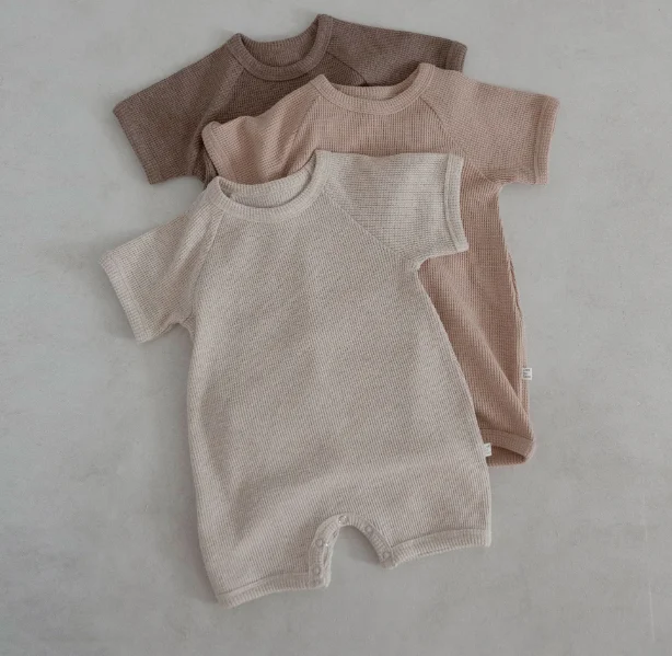 Summer New Baby Romper Summer Boys Girls Basic Playsuit Wear Infant Baby Short Sleeve Jumpsuit Waffle Clothes Outfits