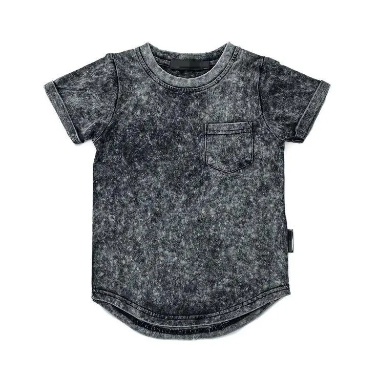 Summer Tailored Short Sleeve Baby T-shirt Acid Wash Casual O-neck Knitted Cotton Top