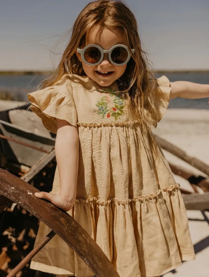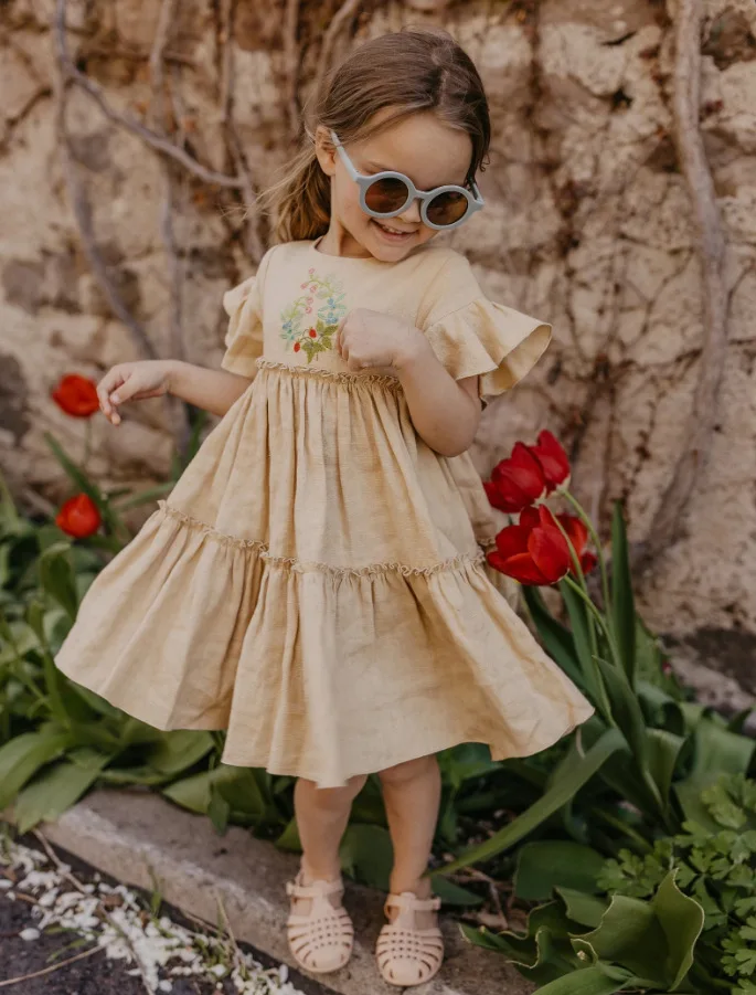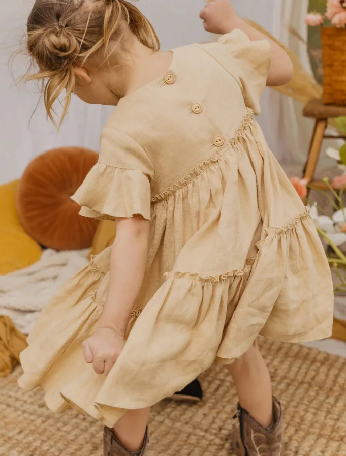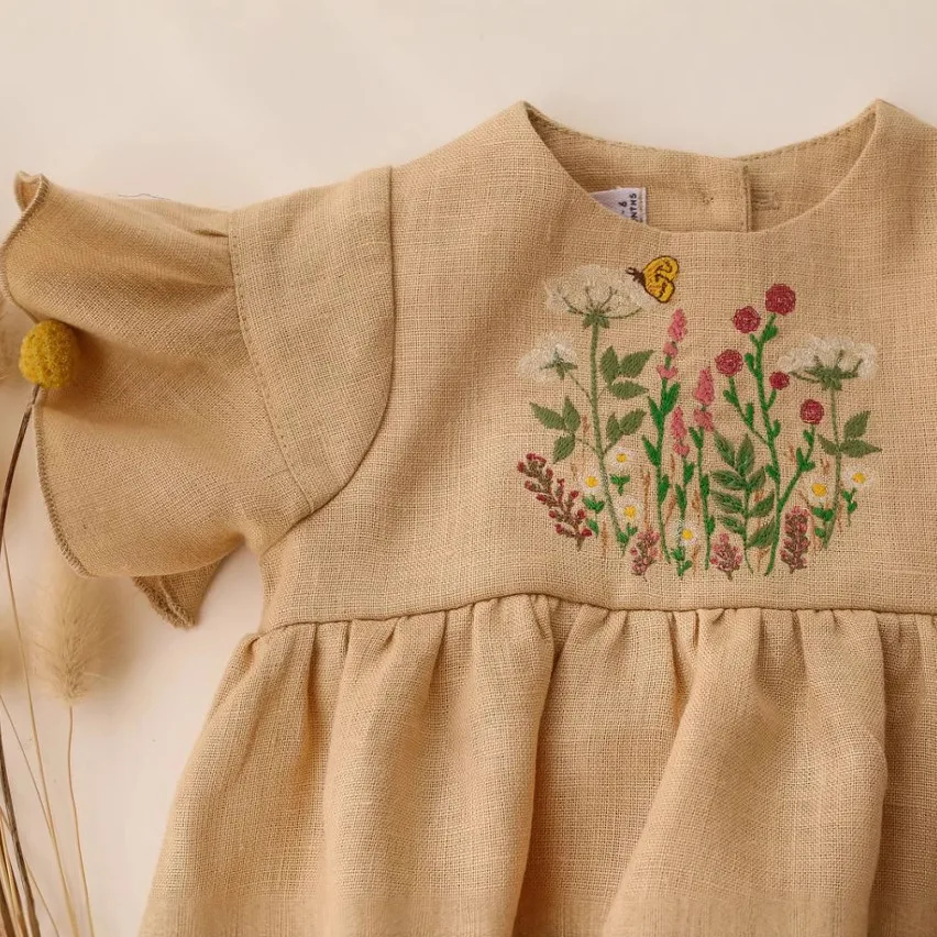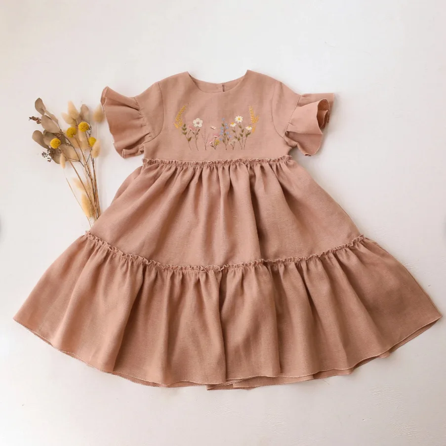 The Latest Summer Girls Princess Dress Cake Skirt Pleated Trumpet Sleeve Cotton and Linen Embroidery Vest Skirt