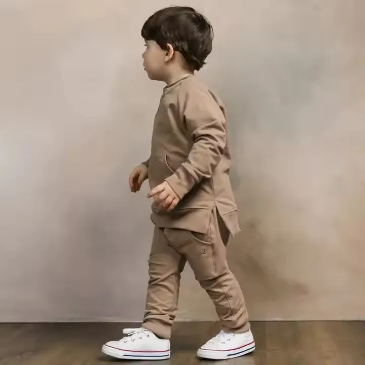 The Popular Autumn Solid Color Kid’s Homewear Sets Wear Casual Long-sleeved Two-piece Sets