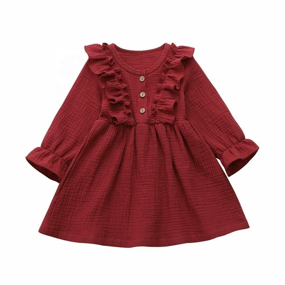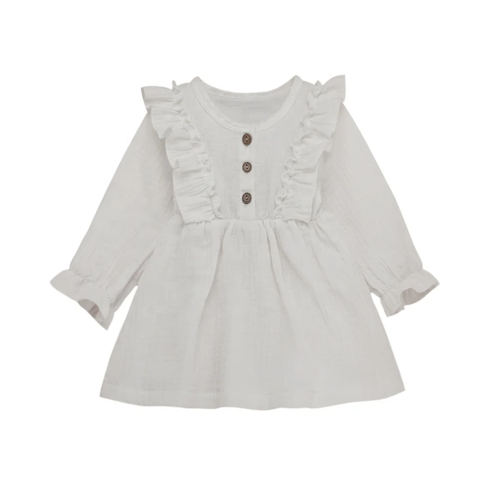 Toddler Baby Girl Summer Dress Ruffles Sleeves Muslin Children Girls Casual Button up Kids Sundress