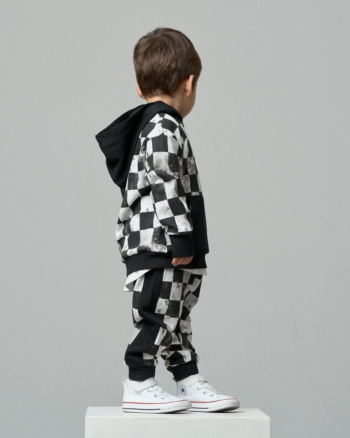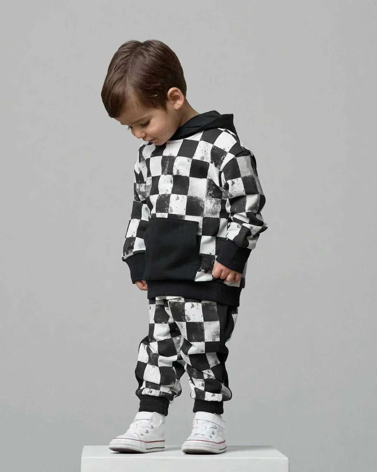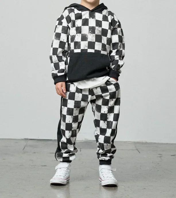 Toddler Boys Checkered Hoodie Jogger Set French Terry Cotton with Kangaroo Pocket 2pcs Baby Clothing Set