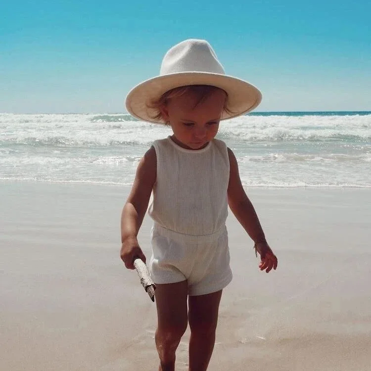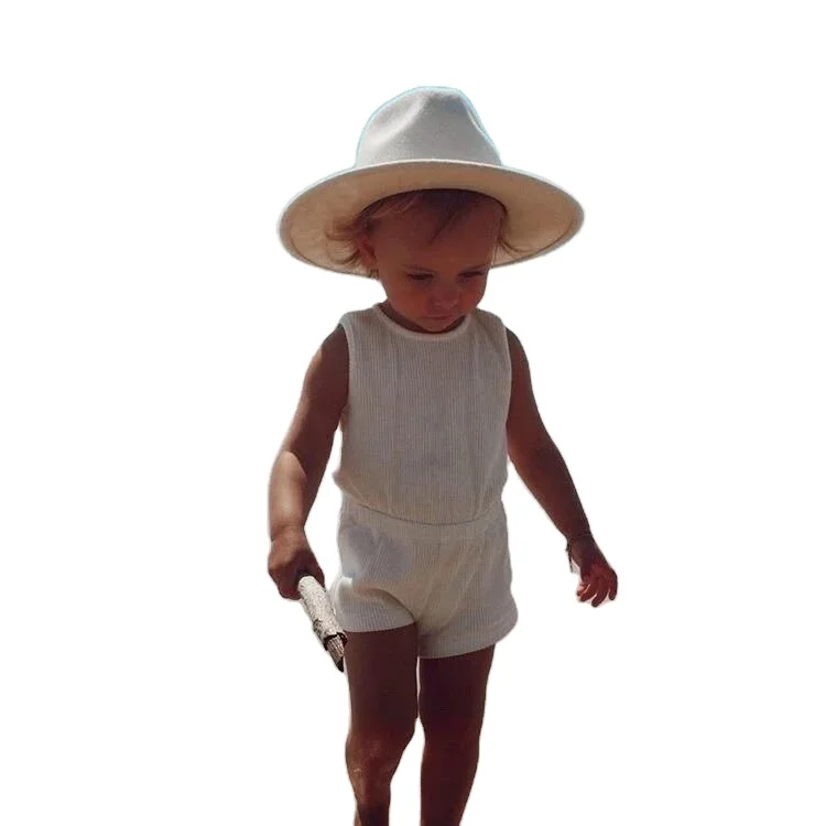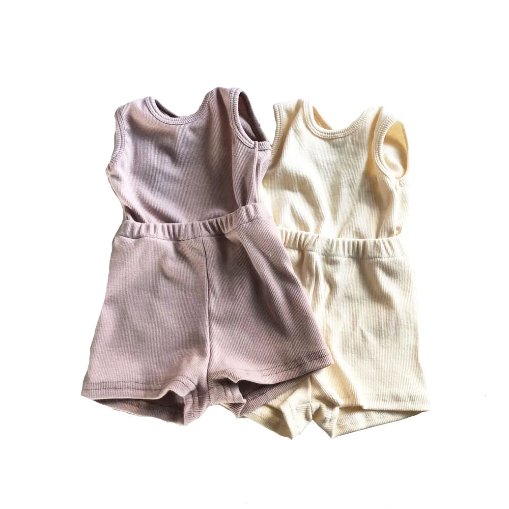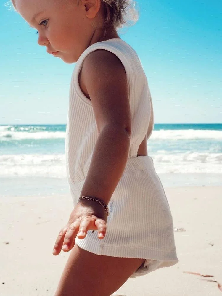 Toddler Girl Cotton Playsuit Summer Ivory Knit Sleeveless Open Back Jumpsuit Baby Ribbed Romper Suit