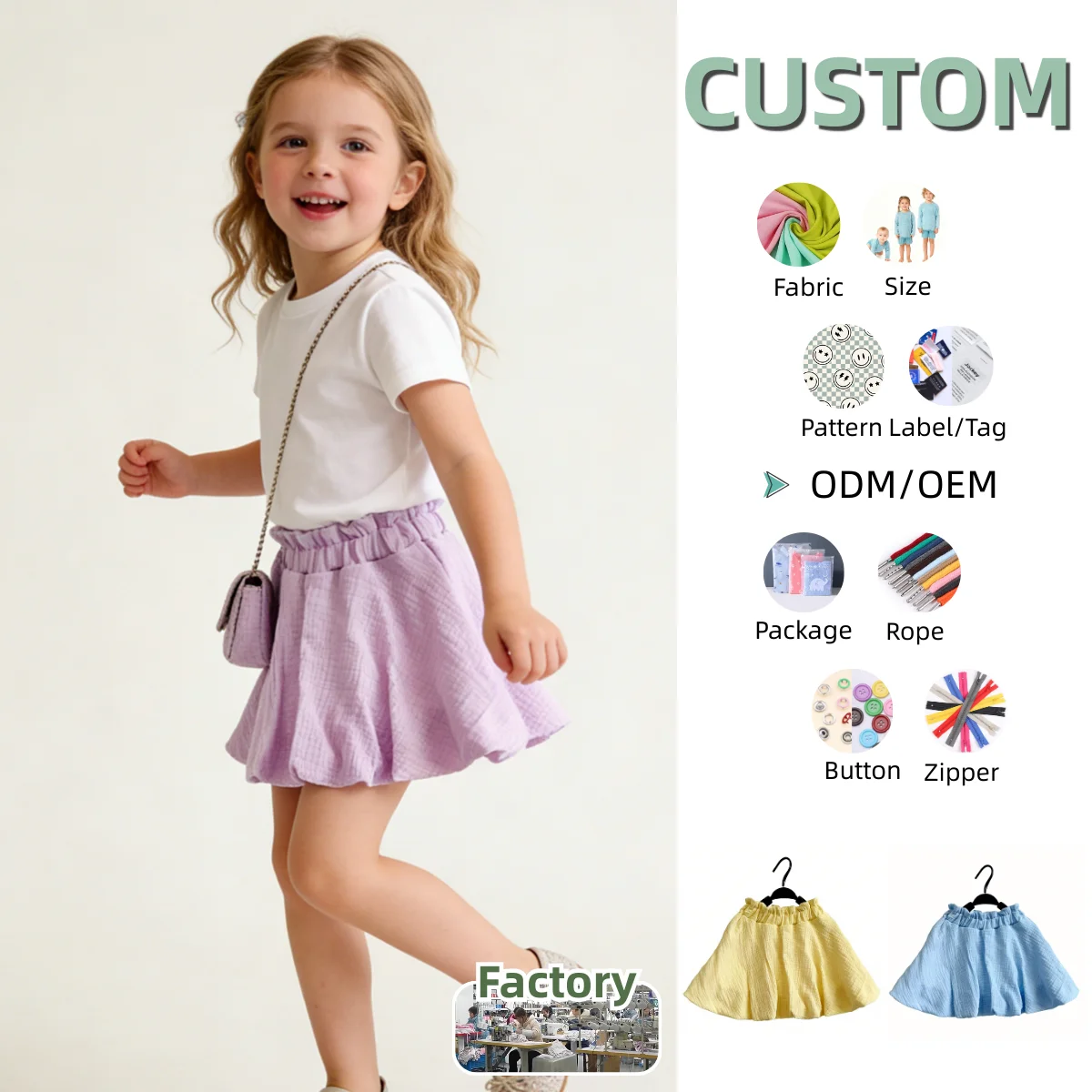 Top Sale Crepe and Cotton Short Kilt One-piece Girls Dress for Summer Girls Summer Fashion Children’s Short Skirt for 0-8T