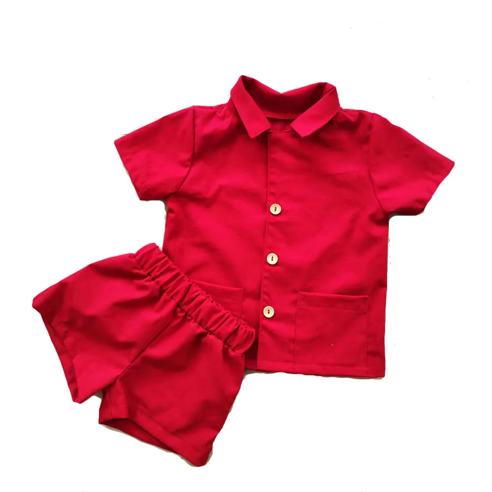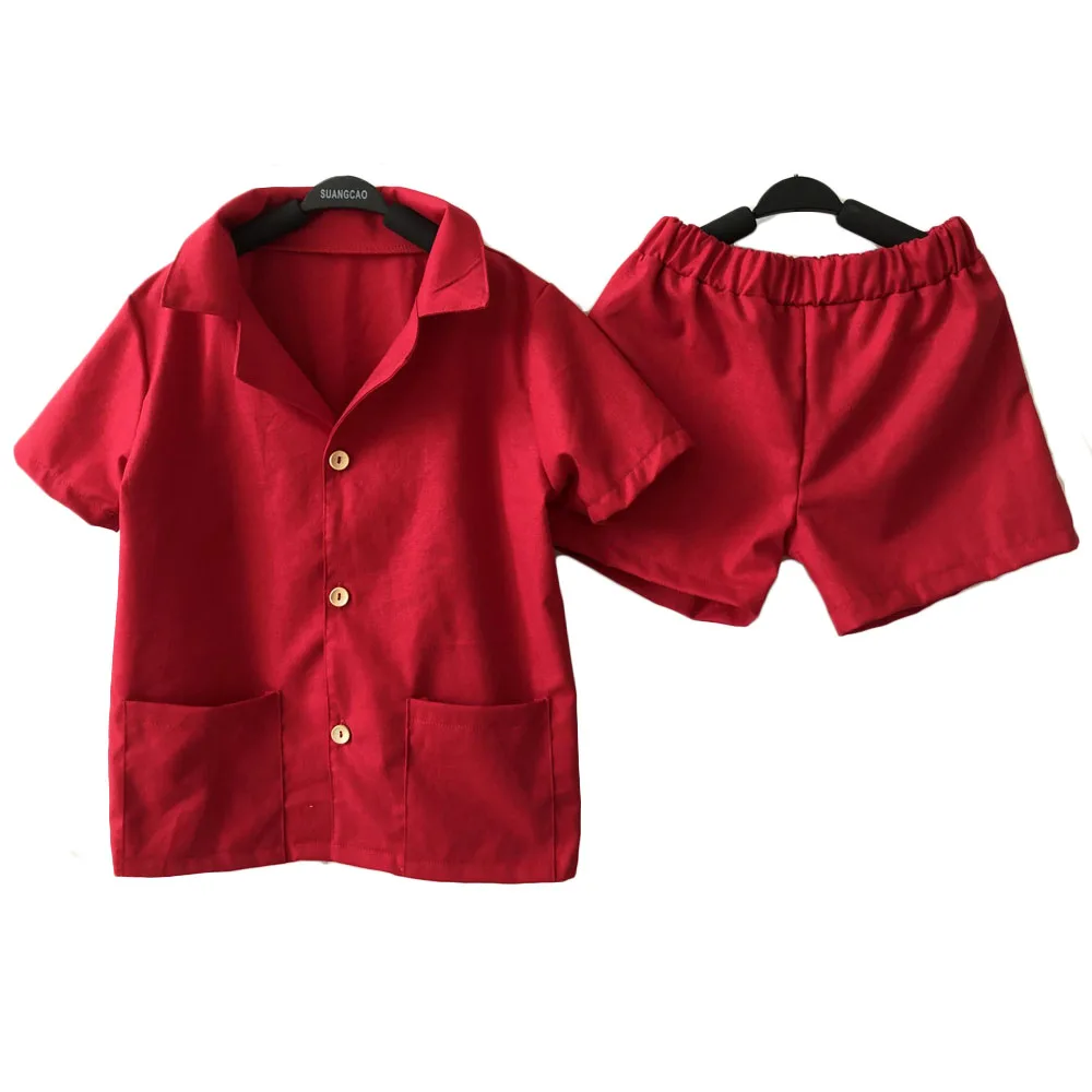 Unisex Baby 2024 Summer Cotton Linen Short Sleeve Suit Stand Collar Button Shirt with Loose Shorts Baby Kids Outfits