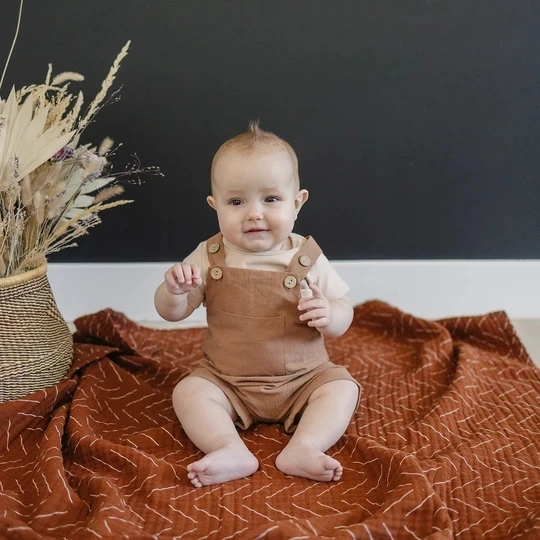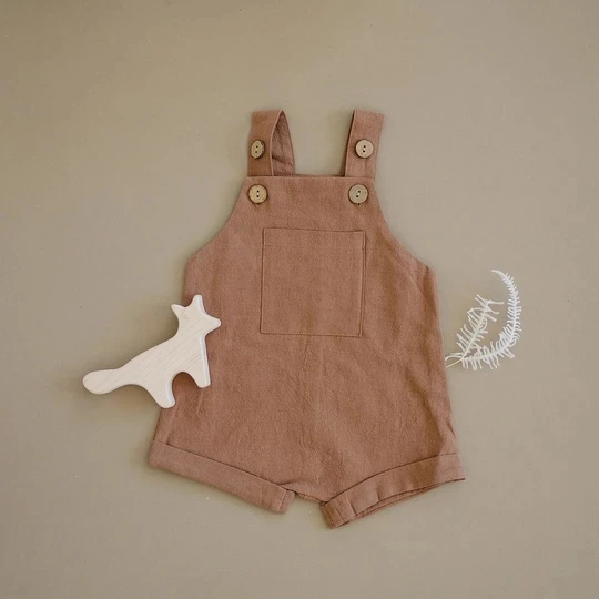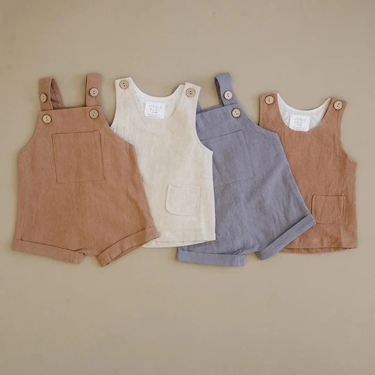 Unisex Baby Sleeveless Linen Shortall Sleeveless Toddler Front Pocket Overall