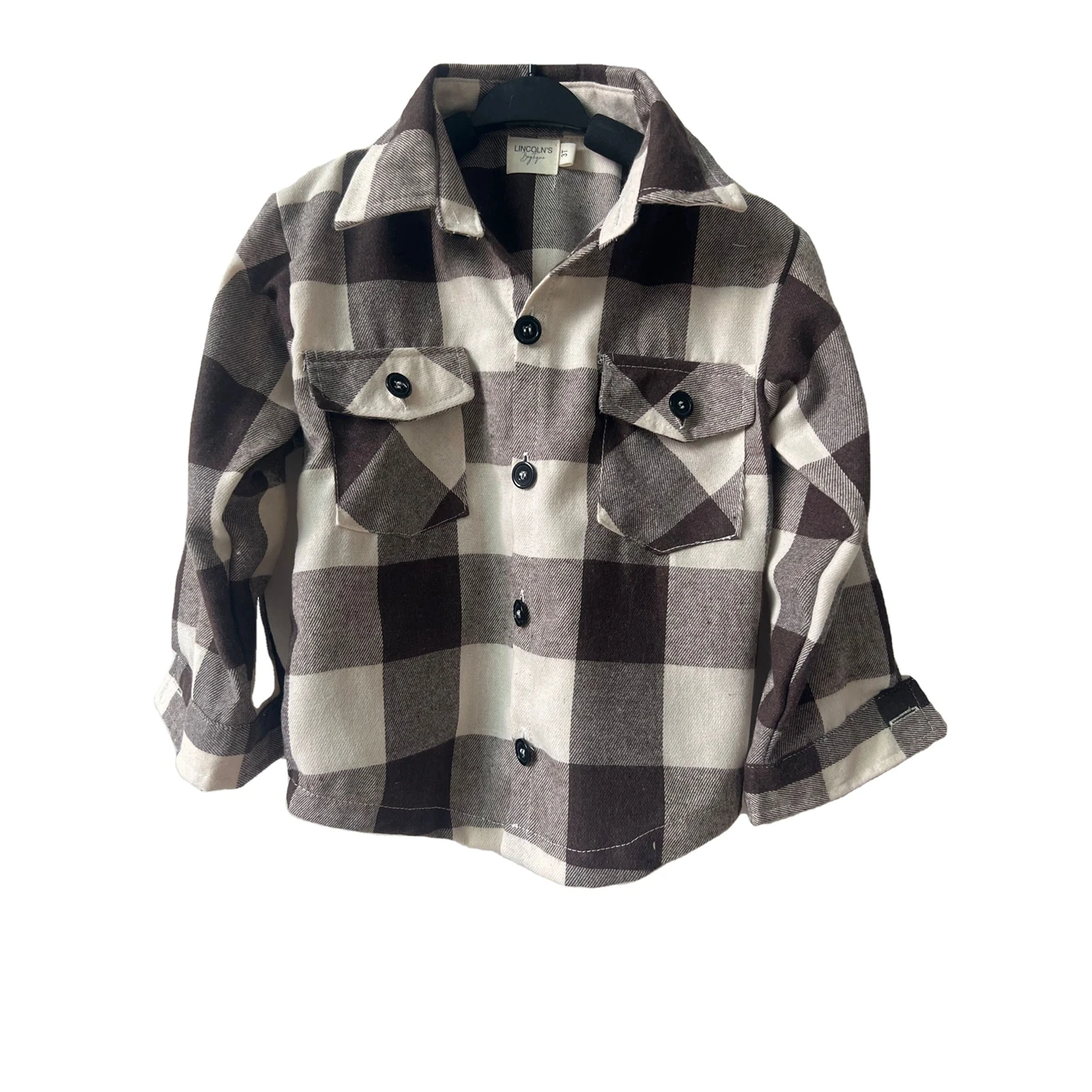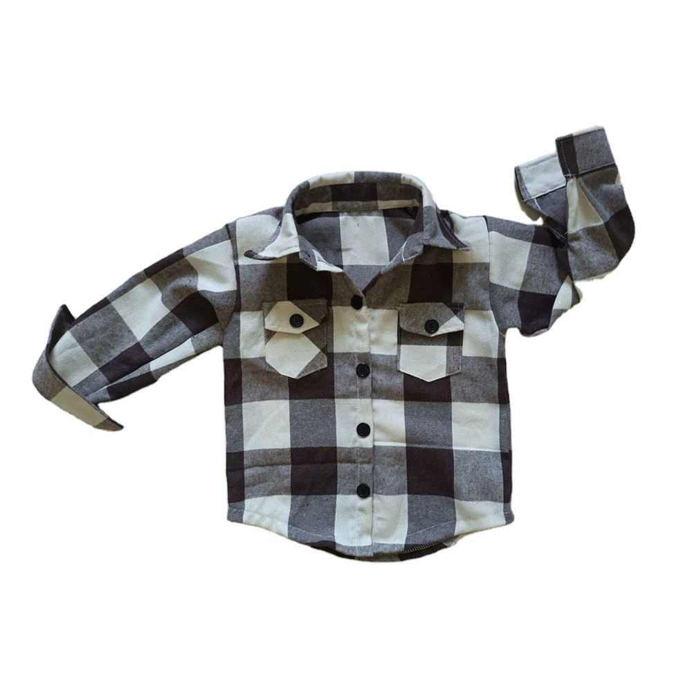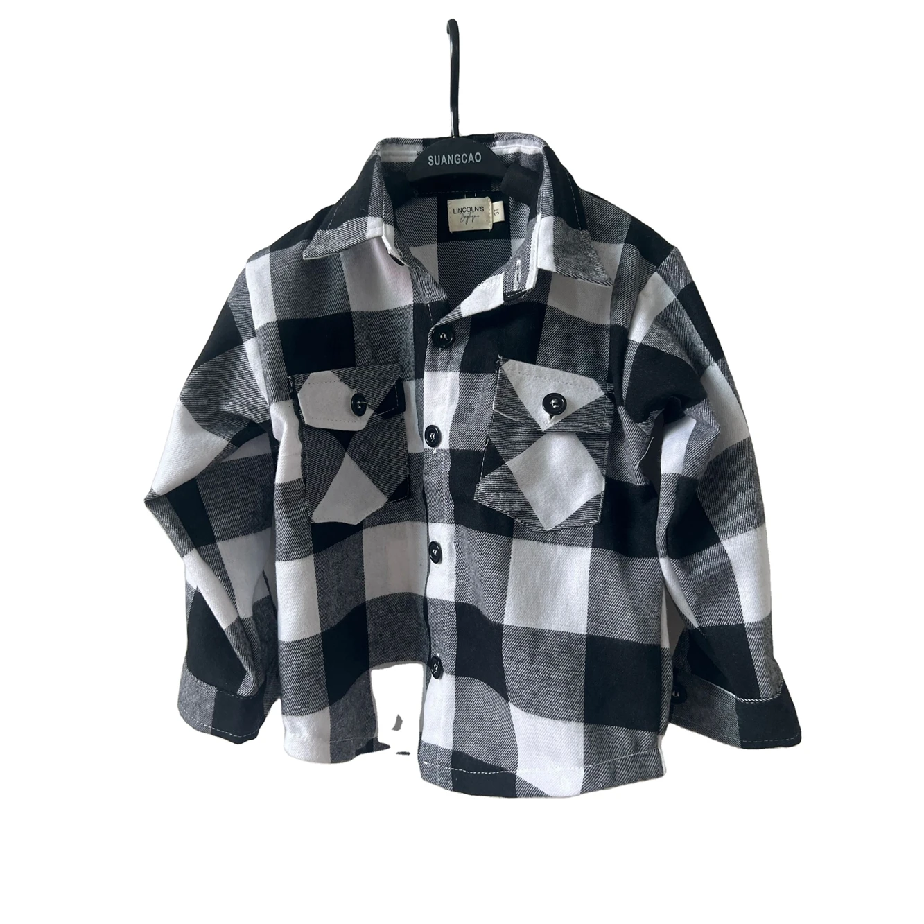 Vintage Plaid Shirt Baby Boy Gingham Plaid Tartan Check Shirt Top Button Down Black White Baby Toddler Children’s Kids Shirt