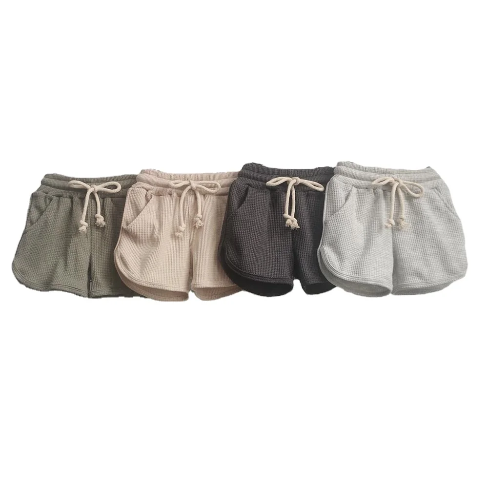 Waffle Shorts Baby Kid Summer Thin Loose Student Movement Wide Leg Casual High Waist Girls’ Sweatpants Shorts